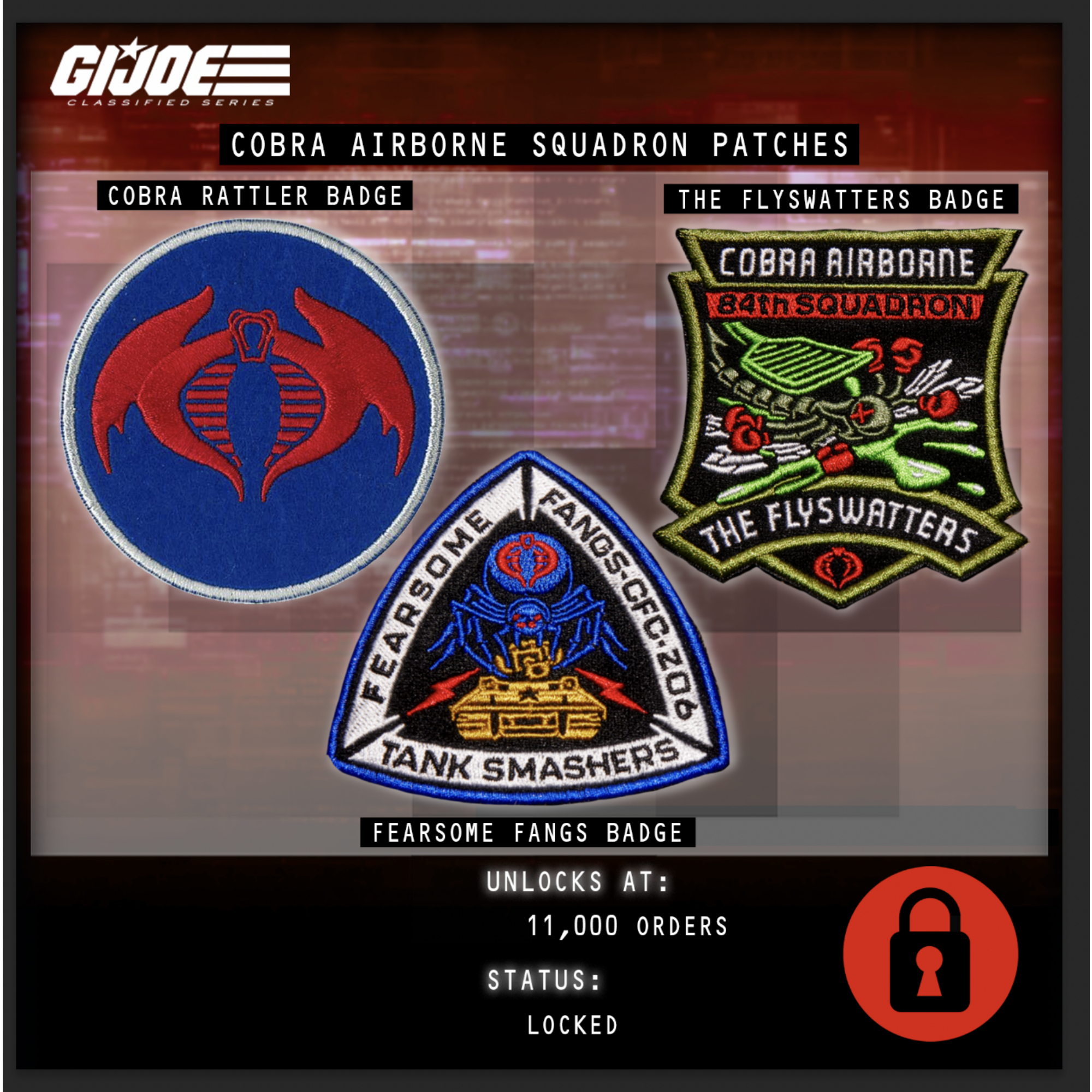 - 11,000 Backer Orders to unlock Cobra Airborne Squadron Patches