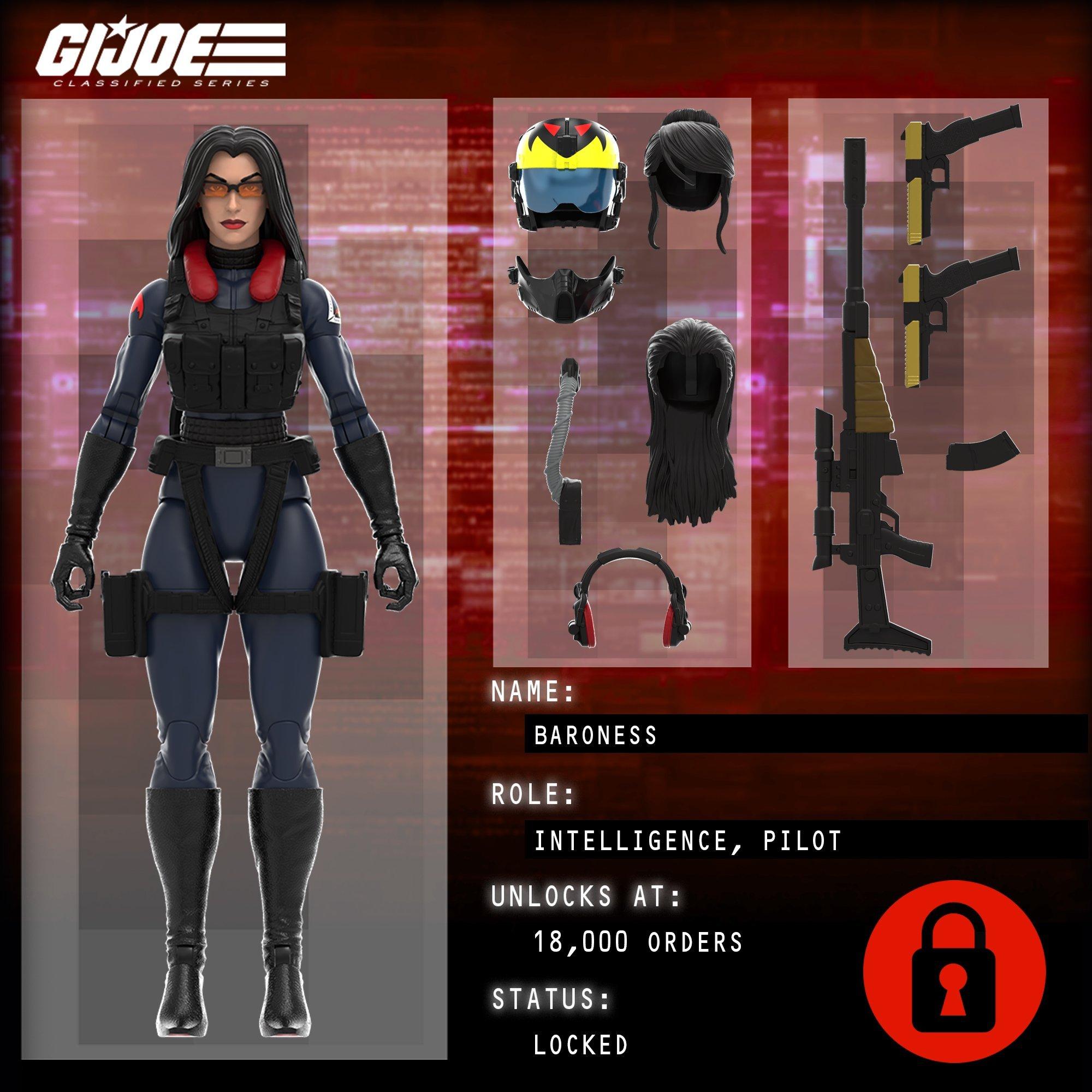 - 18,000 Backer Orders to unlock the pilot Baroness Action Figure
