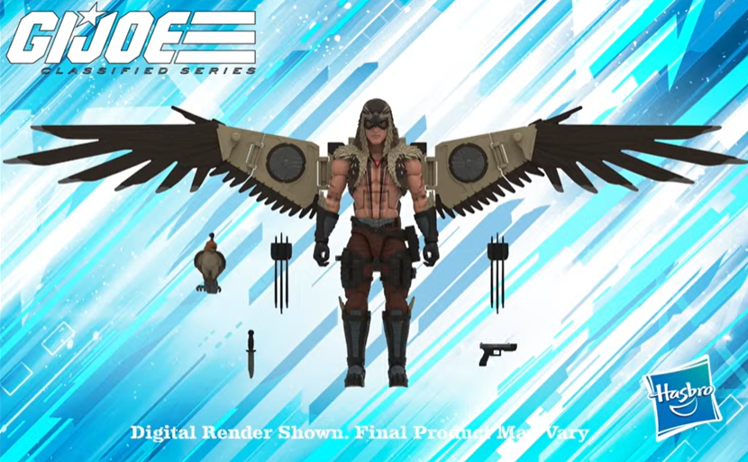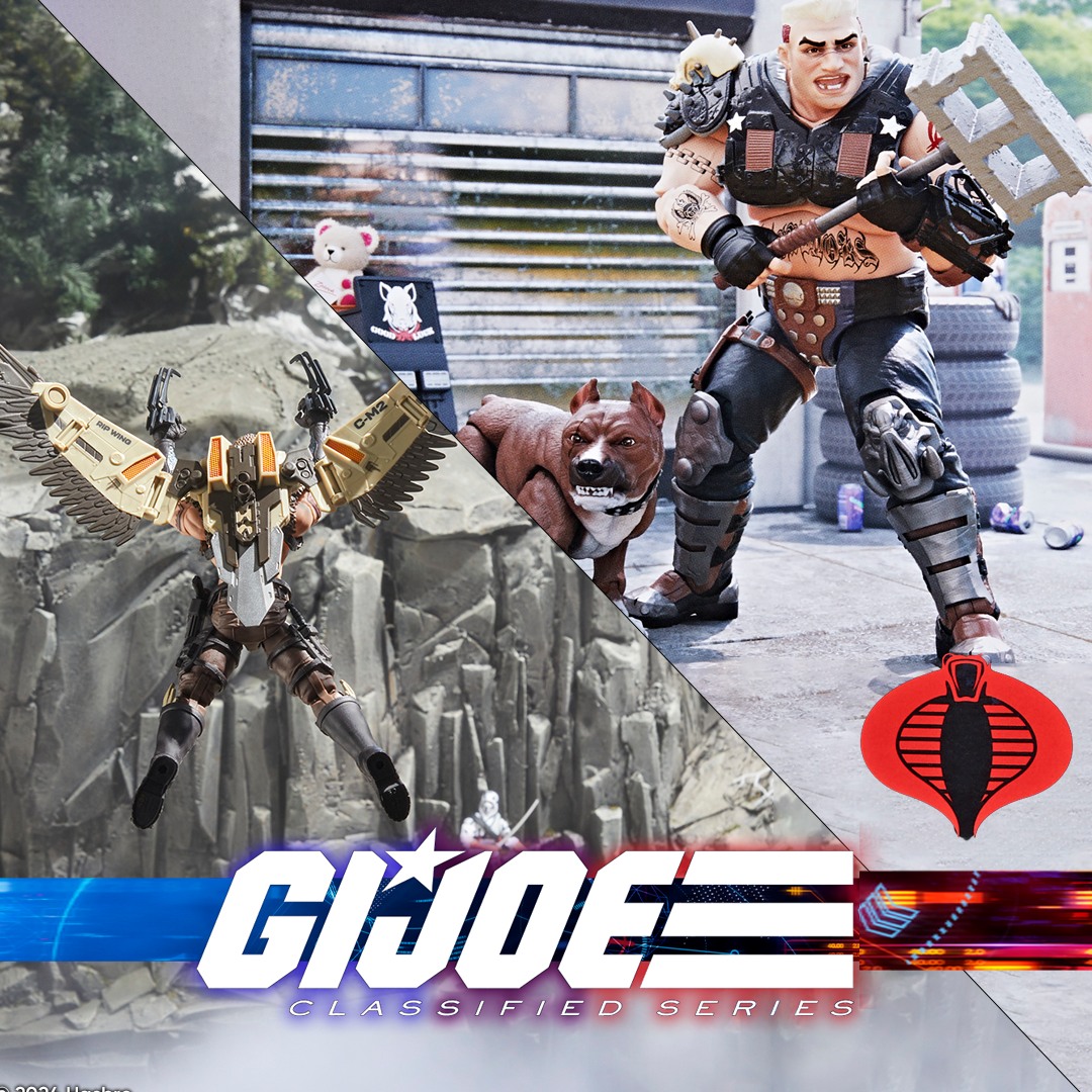 Revealed at #SDCC, prepare your G.I. Joe troops for the ruthless additions of #139, CHIP “RAPTOR” TALON & GENERAL LEDGER and #135, Dreadnok Road Pig & Rawkus to the Classified Series! Chip “Raptor” Talon & General Ledger feature 7 accessories inspired by the Cobra Falconer and his bird of prey companion, including 2 claws, knife, cowl, a weapon, the incredibly articulated C-M2 Daedalus Jet Wing Pack which attaches to the figure’s back and stretches 17 inches when fully extended, plus the ability for General Ledger to pose perched on either of her handler’s wrist gauntlets. Dreadnok Road Pig & Rawkus feature 10 accessories inspired by the Dreadnok Enforcer and his “warmongrel” Pitt Bull including alternate heads and multiple weapons!