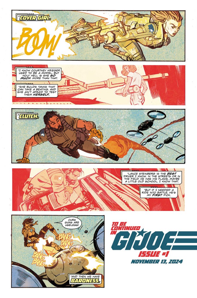 G.I. JOE #1 ($4.99, unless otherwise noted) will be available at comic book shops and digital platforms including Amazon Kindle, Apple Books, and Google Play on Wednesday, November 13, 2024.