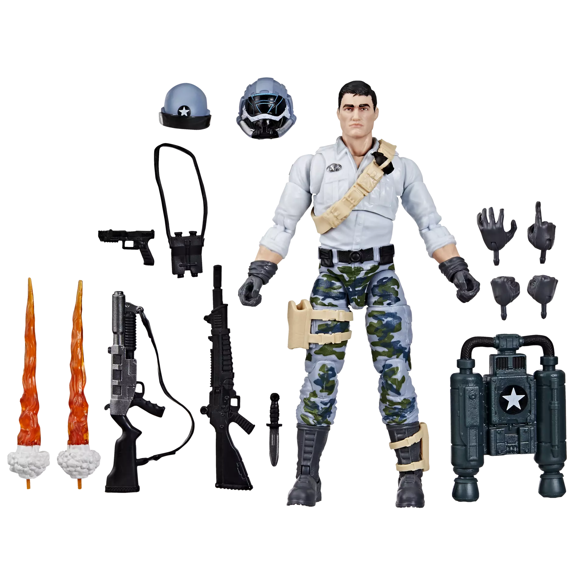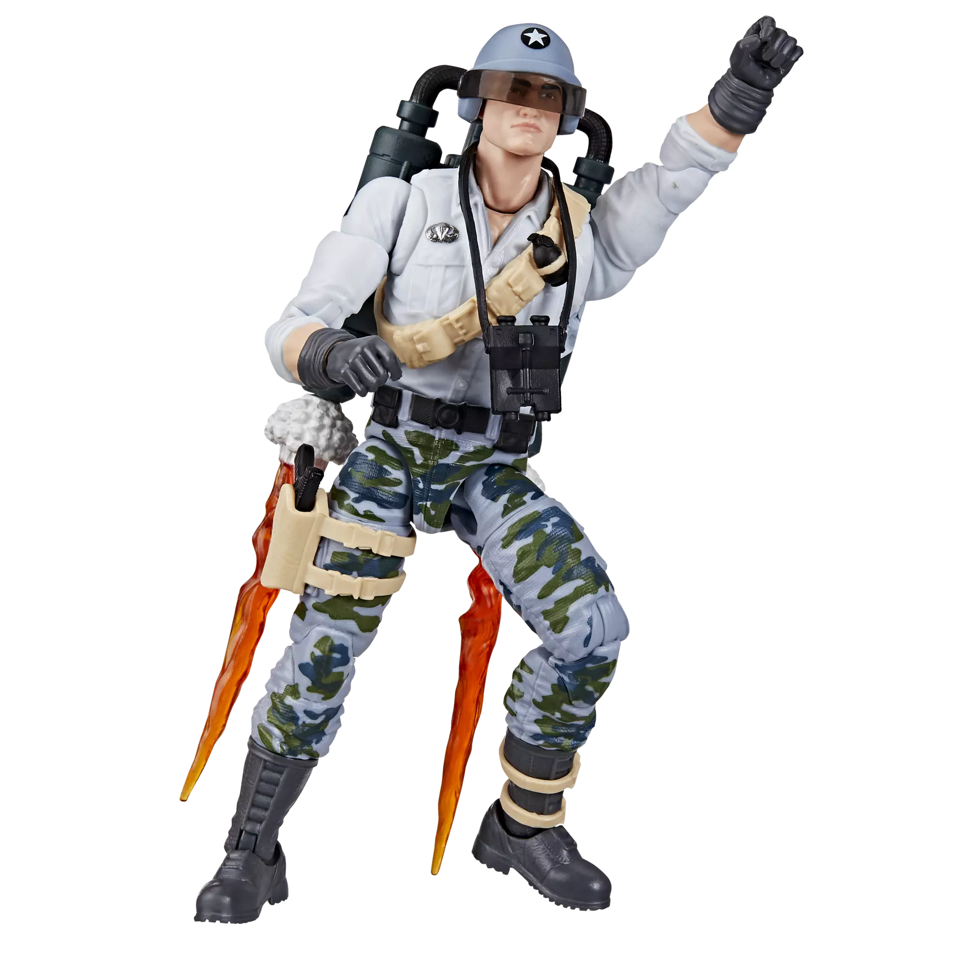 Meet Edward “”Starduster”” Skylar, newest figure to the G.I. Joe Classified Series line. He specializes in air reconnaissance and tactical air support. Whether you send him up for a look at Cobra’s latest troop movements or call him in as extra airborne firepower, Starduster comes ready for adventure, with multiple points of articulation for high poseability. This Starduster figure contains 14 character-inspired accessory pieces including Steel Corps helmet, his signature visored helmet, binoculars, 4 alternate hands, knife, J.U.M.P. jetpack with 2 removable blast effects, and 3 weapon accessories.