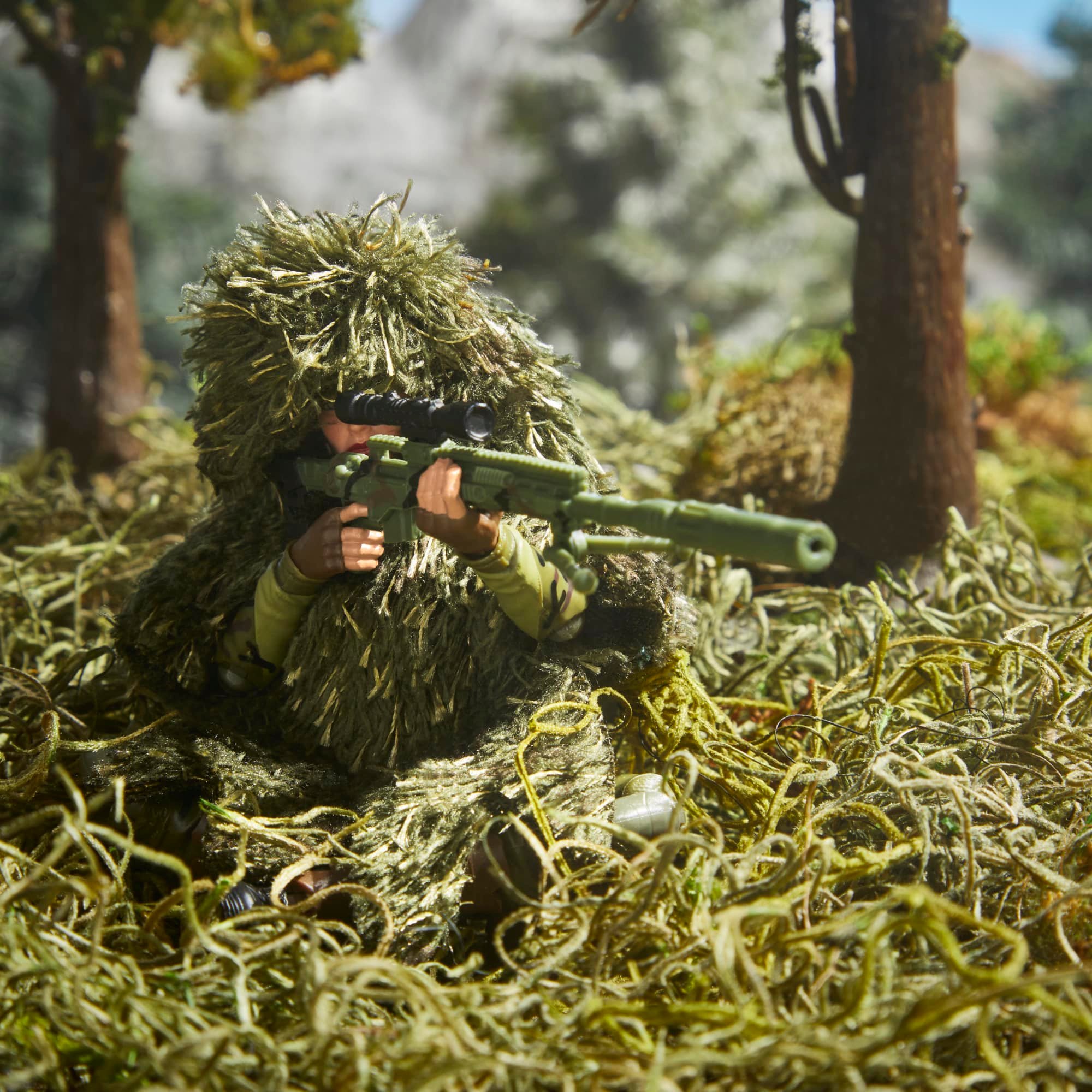 - MODERN ACTION MARINE-INSPIRED DESIGN: Features a contemporary military design bringing the rich history of the G.I. Joe Action Marine – Sniper into the modern era and packed with a Ghillie Suit and 19 accessory pieces making it ideal for troop-building