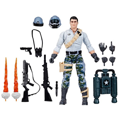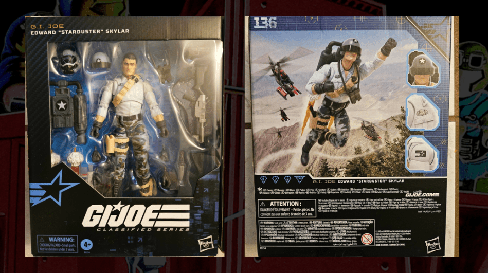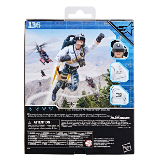 Starduster makes his G.I. Joe Classified debut as the 136th figure in this popular line. The figure includes a Steel Corps helmet, visored helmet, binoculars, 4 alternate hands, knife, J.U.M.P. jetpack with 2 removable blast effects, and 3 weapon accessories. It comes packaged inside a special Action Mission Box.