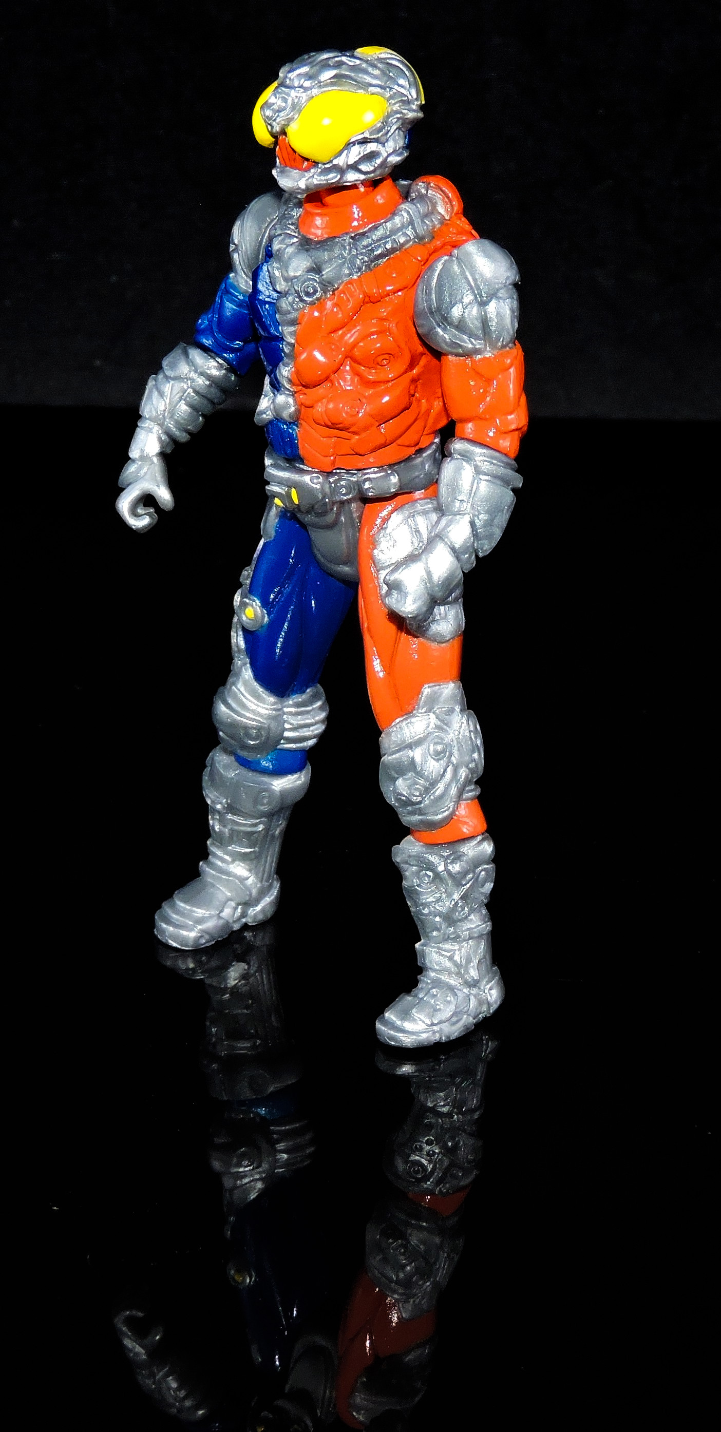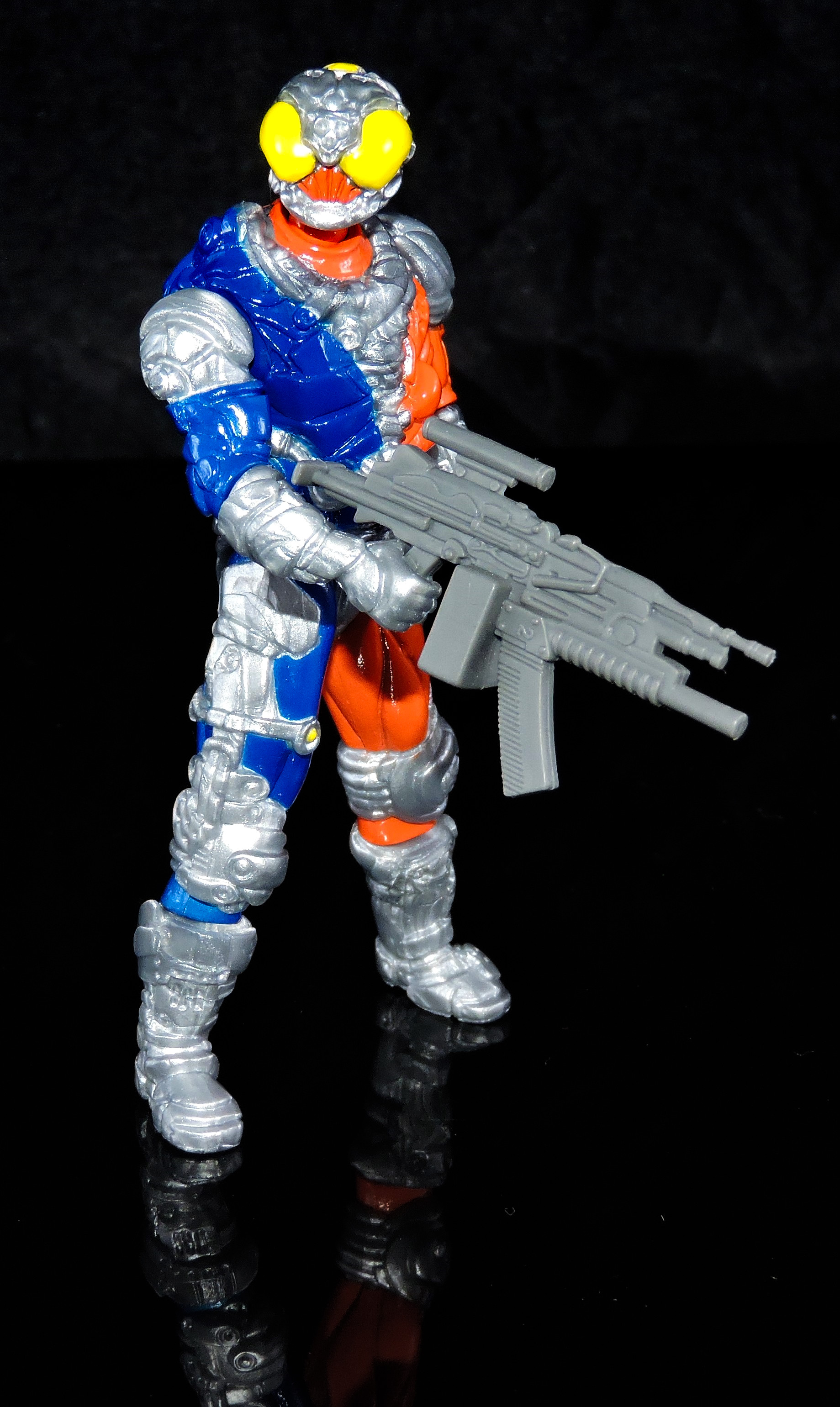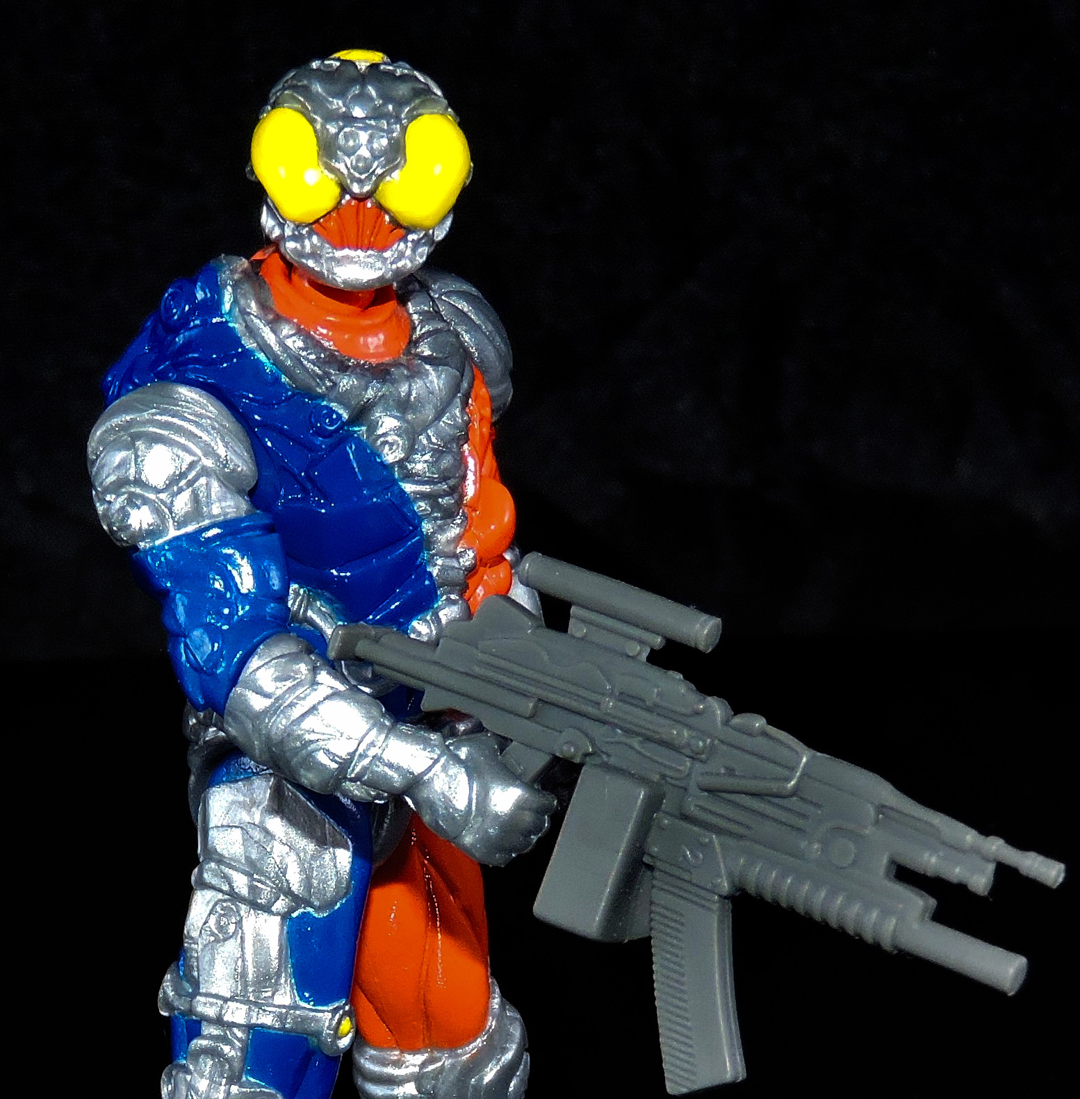 As the series features the Glyos joint system, you can pop of his head, legs, arms, torso, etc. and mix/match parts to make your own kick ass figure! He’s 1:18 scaled, so I’ve taken a pair of images with the Metaruda Rift Killer to his size/stature next to a few other offerings.