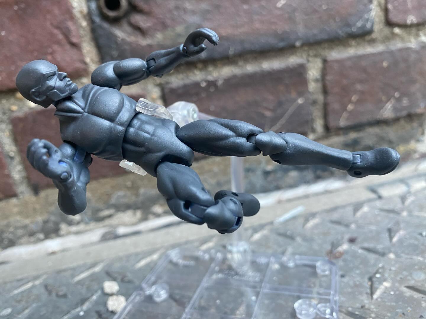 Here are a few test shots of a blank shield of the interceptor action figure body. I am just trying to show off some of the articulation on the figure. I hope it helps to drive more confidence in the Kickstarter campaign and the work we put together on creating this toy. This body type will be for the future figure unlocks. The only difference between this, and the current interceptor action figure is the upper torso which has a collar as well as the forearm and calves.