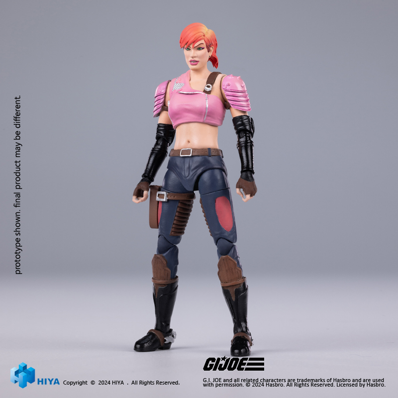 This brand-new Zarana action figure stands at 10.2CM in height. Based on the original appearance of the G.I. Joe. She wears a tailored cropped jacket, with meticulous stitching and studded embellishments that exude a strong sense of personality. The leather straps and buckle details on the left side of the jacket add a touch of sophistication. The overall modern punk style, paired with vibrant makeup and sleek gradient pink short hair, makes her stand out strikingly in any crowd.