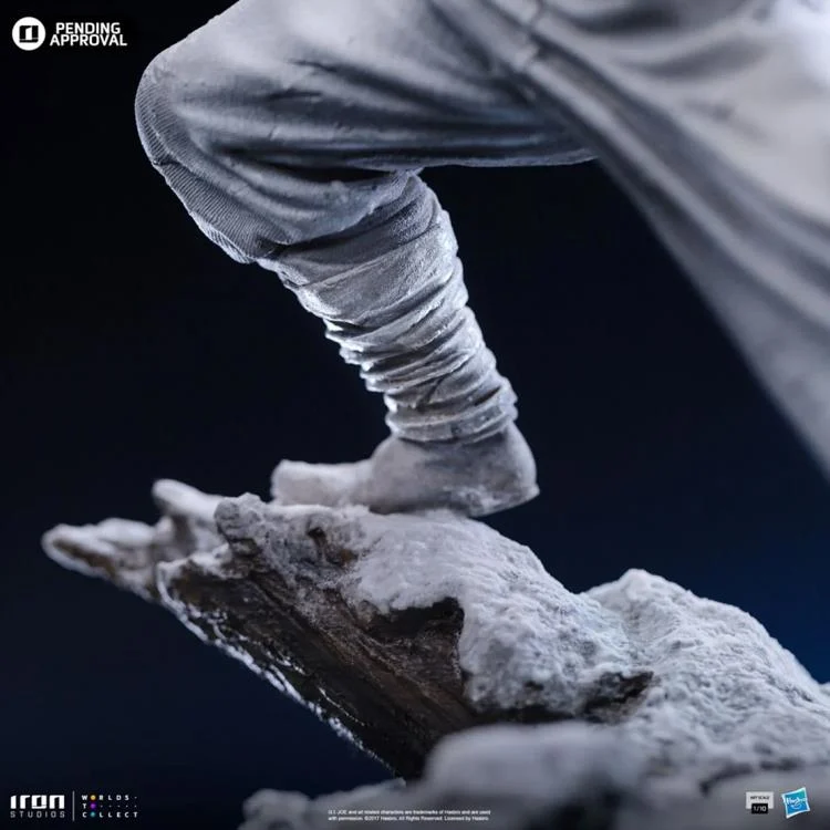 Dressed in his iconic white uniform, Storm Shadow is not just prepared for combat—he’s already fighting. With a Katana in his left hand and Tekagi-Shuko claws in his right, he unleashes a deadly strike while already preparing for his next move. On his back, he carries a bow and a quiver, ensuring he’s ready for long-range attacks as well. Balanced on a snow-covered log, this lethal assassin is brought to life in the “Storm Shadow – G.I. Joe – Art Scale 1/10” statue by Iron Studios, continuing the newly launched G.I. Joe line.