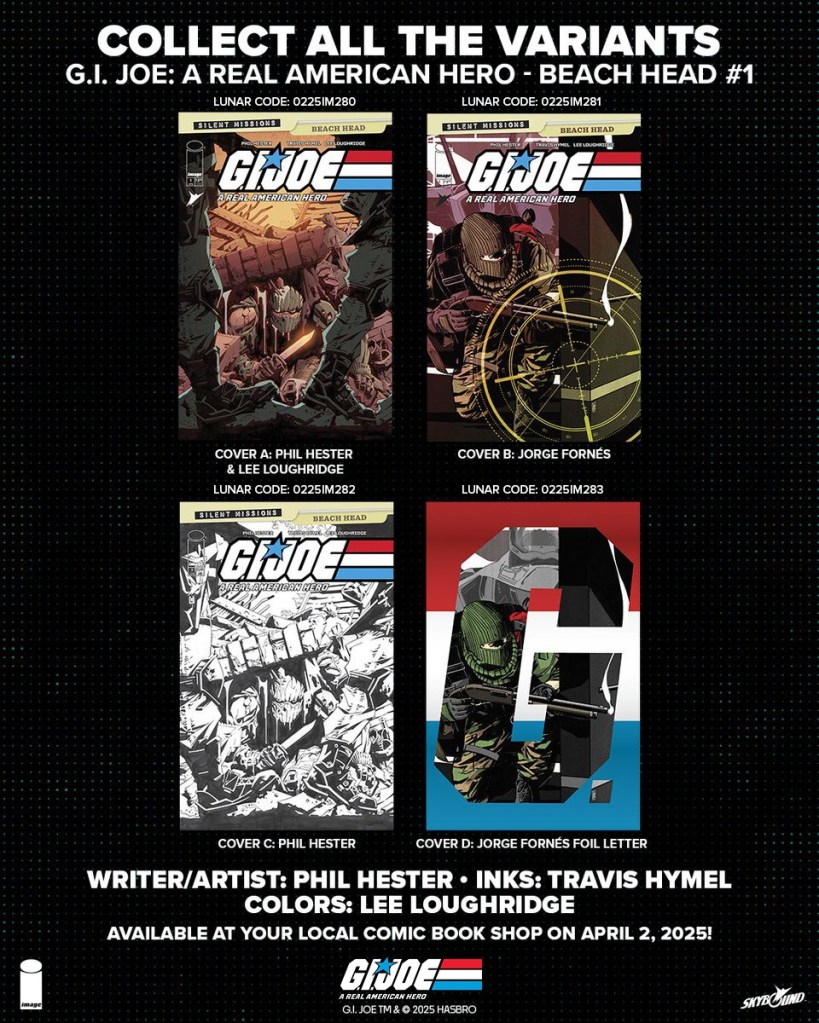 G.I. JOE: A Real American Hero – Beach Head #1 ($3.99) will be available at comic book shops and digital platforms including Amazon Kindle, Apple Books, and Google Play on Wednesday, April 2, 2025.
