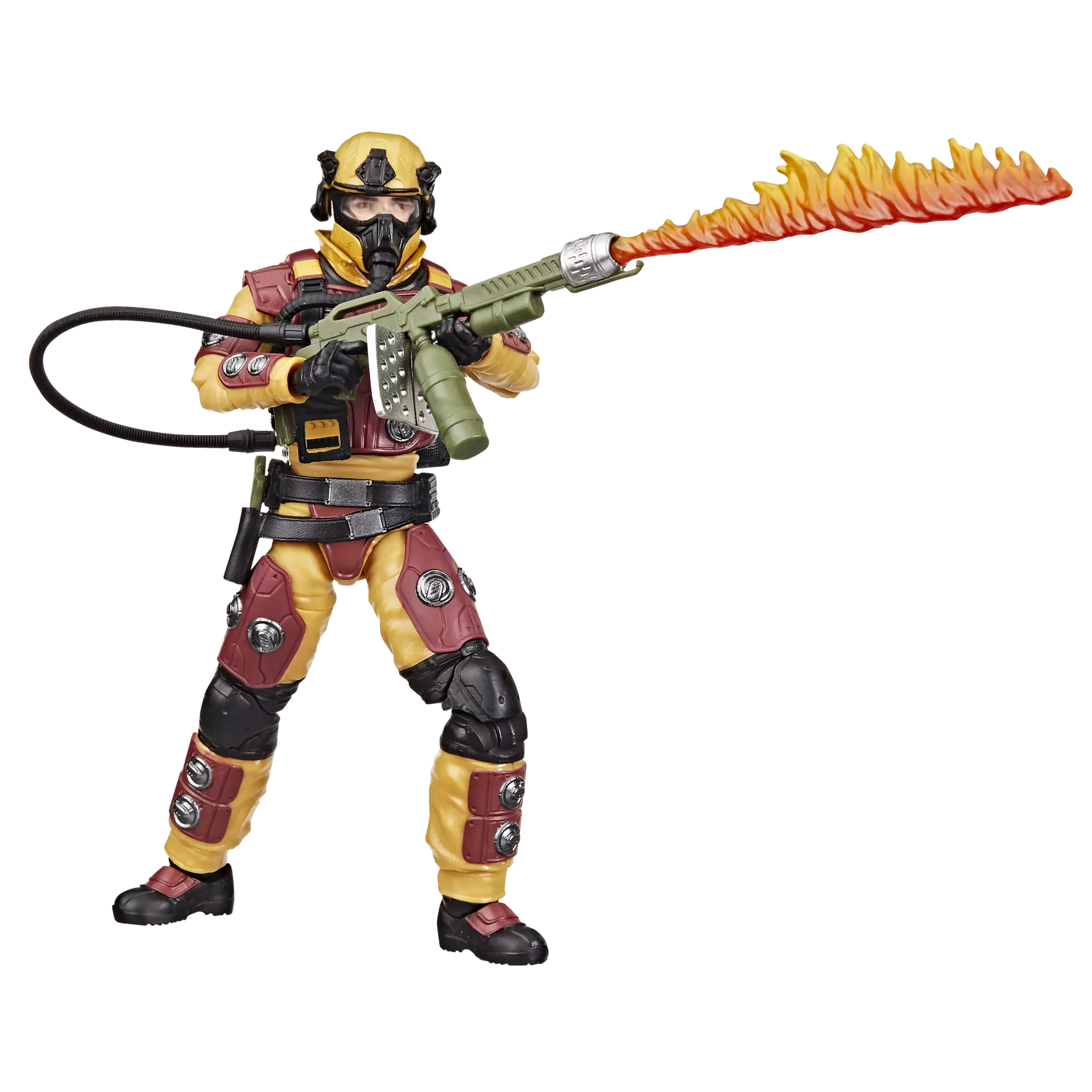 New to the G.I. Joe Classified Series line, Blowtorch comes ready for adventure, with multiple points of articulation for high poseability. This Blowtorch figure contains 10 character-inspired accessory pieces including breathing mask with air hose; helmet; fuel tank backpack; connector hose; flamethrower; spark, jet, and fireball flame effects; and a weapon accessory. To Blowtorch, the use of fire in warfare is a science that predates the bow and arrow. He also has an annoying habit of checking every smoke detector he sees.