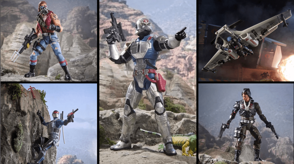 - CLASSIC COBRA PILOT & COBRA C.L.A.W. (COVERT LIGHT AERIAL WEAPON)-INSPIRED DESIGN: Features a classic design updated to bring the air trooper and battle wing into the modern era with 9 figure accessory pieces and 8 vehicle pieces