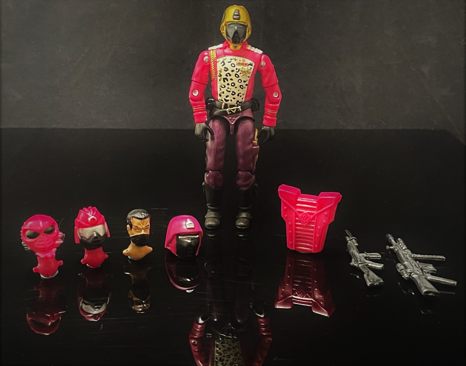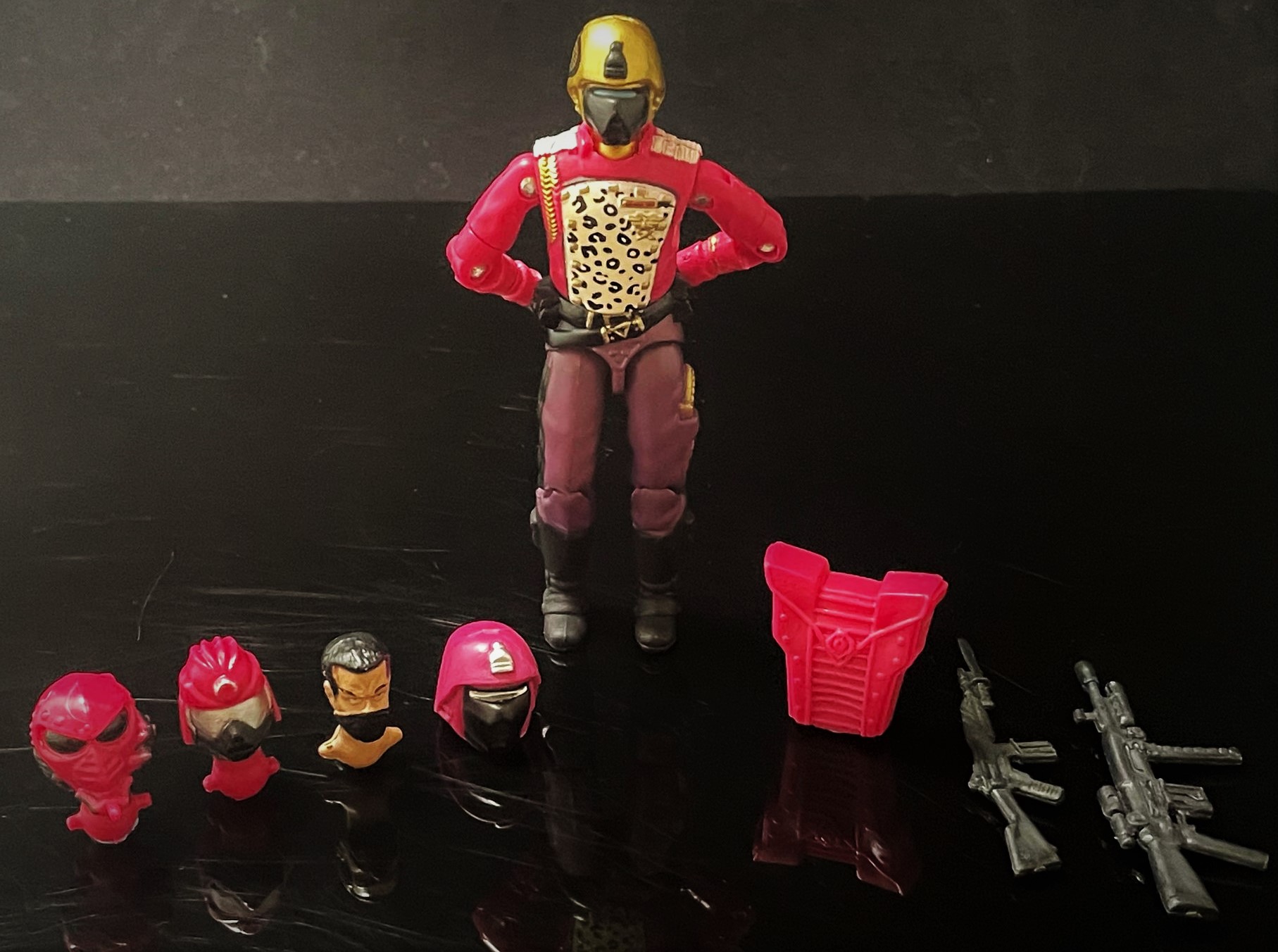 Now, let’s talk QC – Outside of a loose left arm and a few molding lines in my CGI mask, my figure is perfect. The paint apps are clean and well applied and he’s able to hold his weapons without issue. Speaking of weapons, the 2021 Black Major Crimson Guard Assortment includes a TON of goodies, namely an assortment of additional heads and a Viper assault rifle to hit the battlefield with. The heads included are –