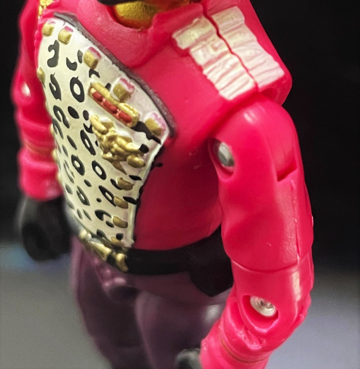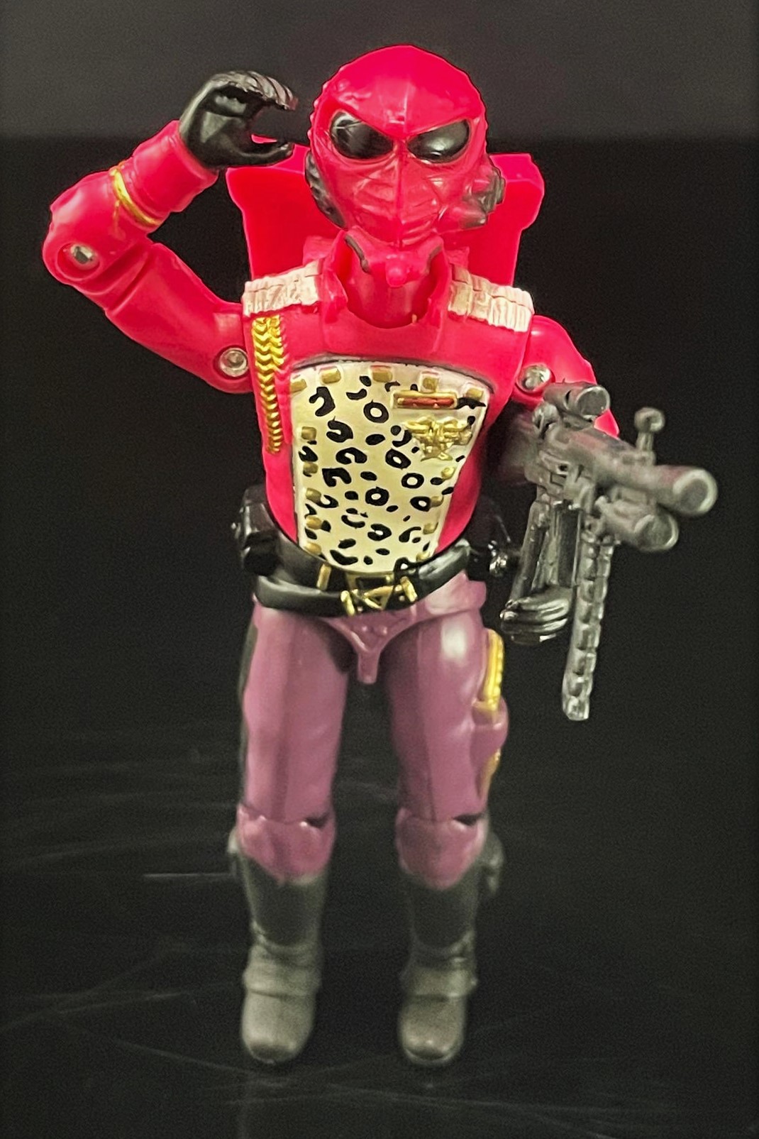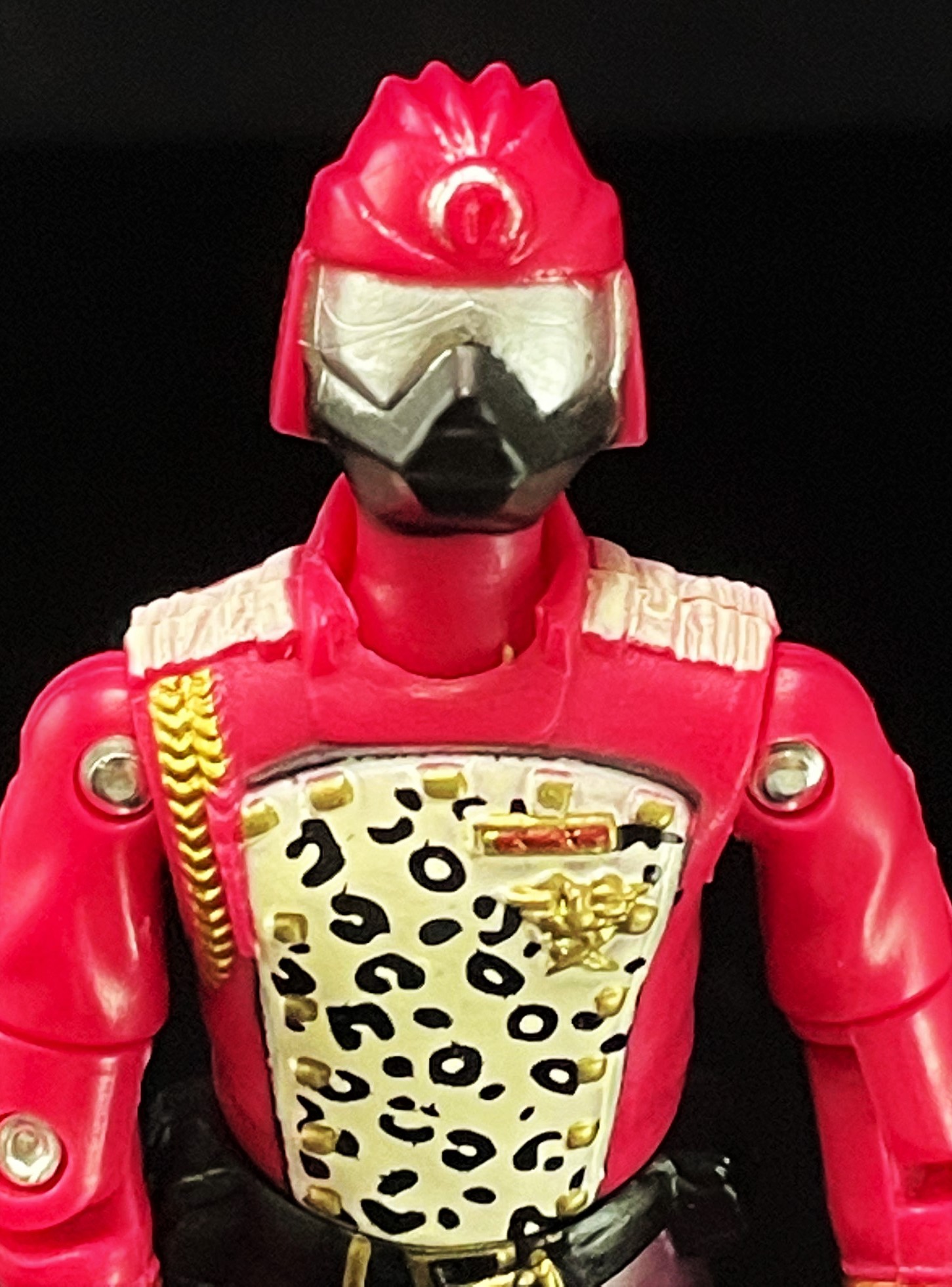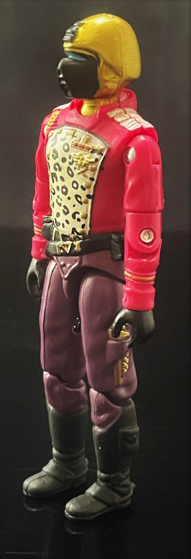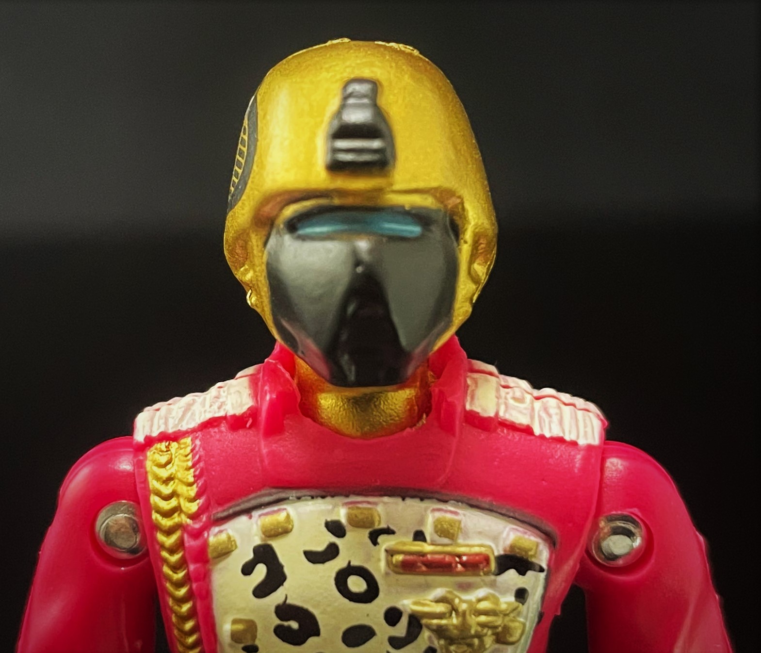 The Pimp Daddy deco really works well on the Crimson Guard mold, with leopard print just popping against the hues of red and plum, with gold highlights and a flat black that really ties everything together. The Gold CG helmet with that big Cobra Logo are just fun to look at, isn’t it?