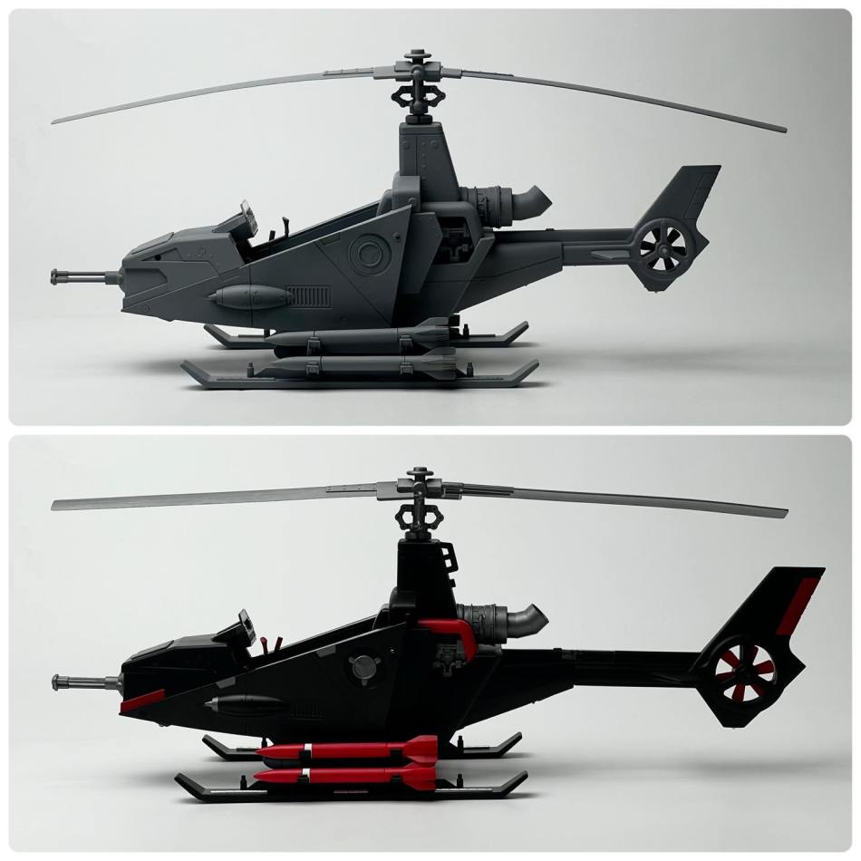 VE-02 updated coloured prototype – It’s in shadow operation colour scheme. The body proportion has been updated. It equips with lighting effect & motorised blade rotation (with safety clutch)!