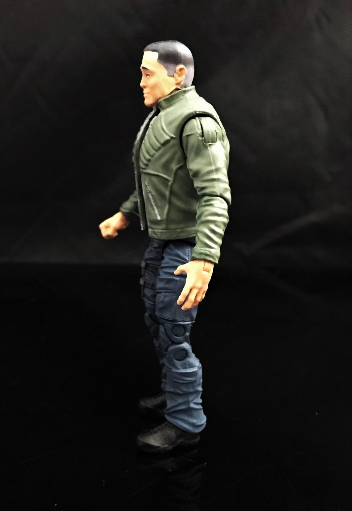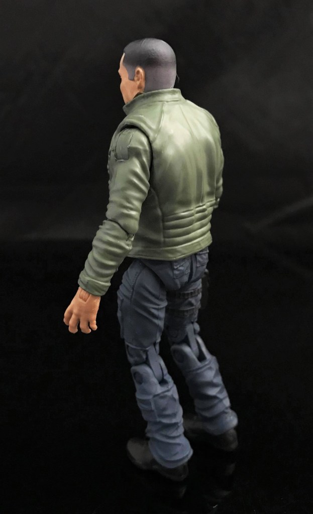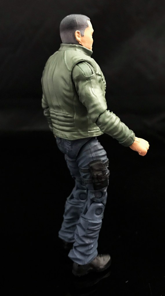 Larry comes sporting a green leather jacket, black shirt, blue pants and black shoes. He’s a 1:18 scale figure with modern era articulation, featuring movement at the head, shoulders, elbows, wrists, waist, knees and ankles.
