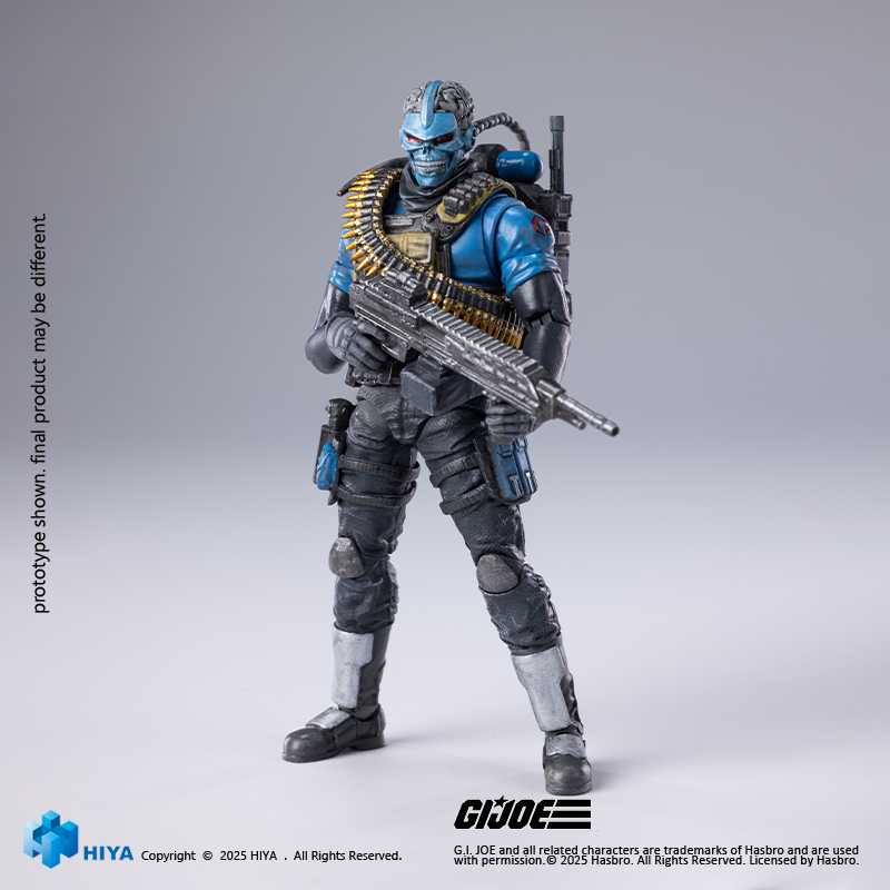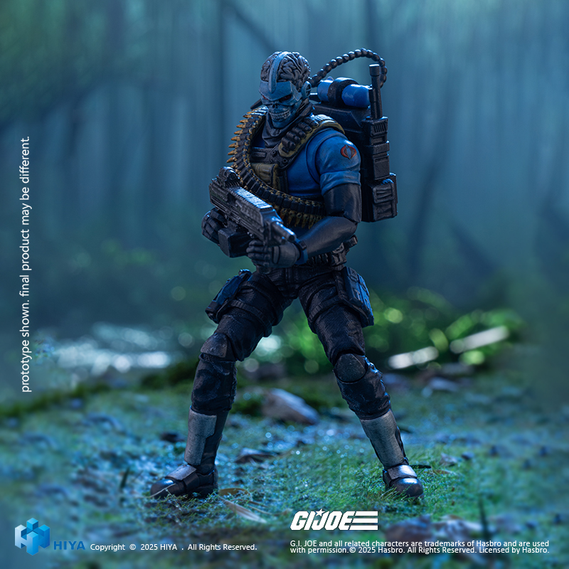 This brand new EXQUISITE MINI Series 1/18 scale Range Viper action figure stands at 10.5CM tall, based on the original appearance of the G.I.Joe. Dressed in his iconic blue long-sleeve combat suit and tactical survival vest, Range Viper features his signature skull mask and grotesque exposed ‘brain’, all finely sculpted to capture every detail of his menacing appearance.