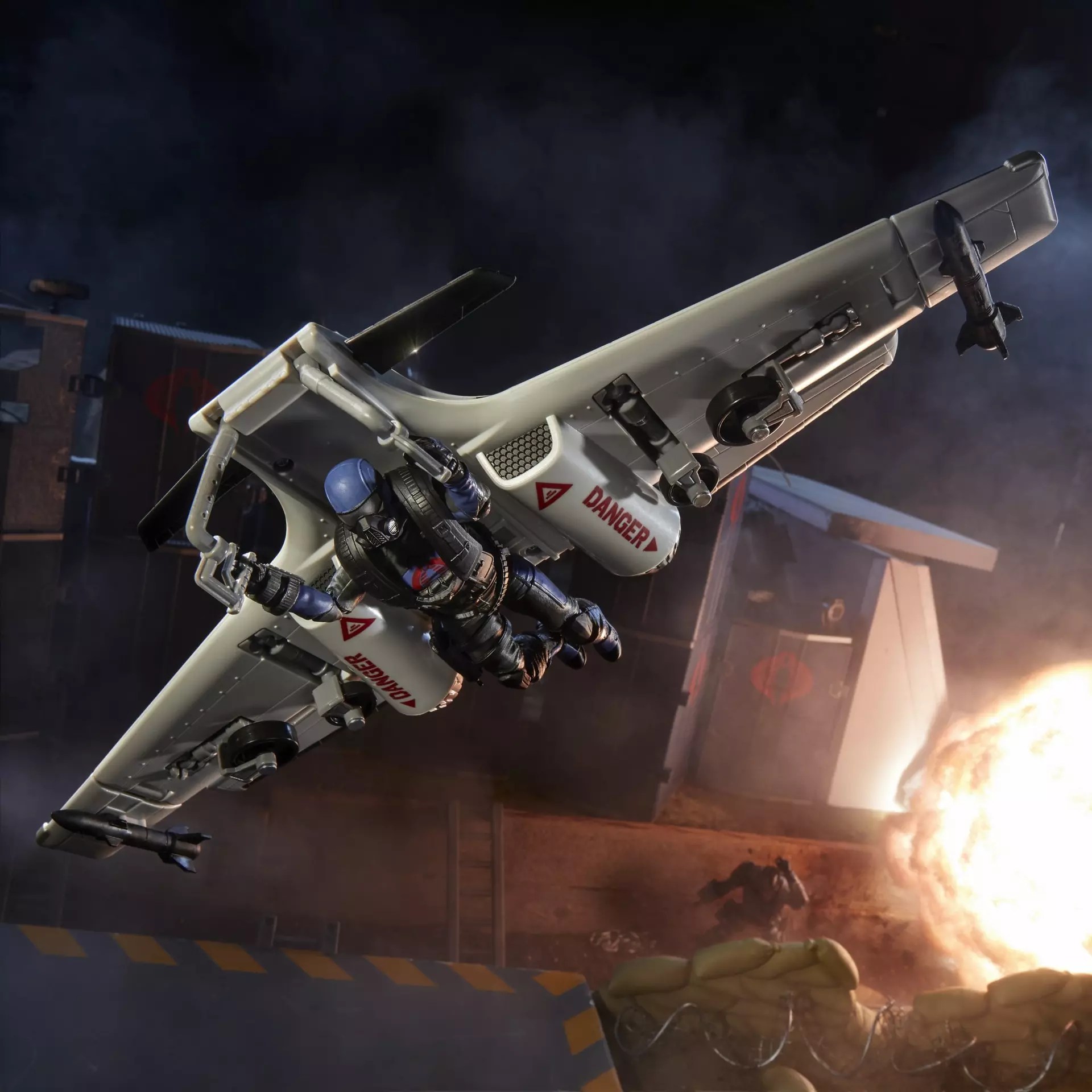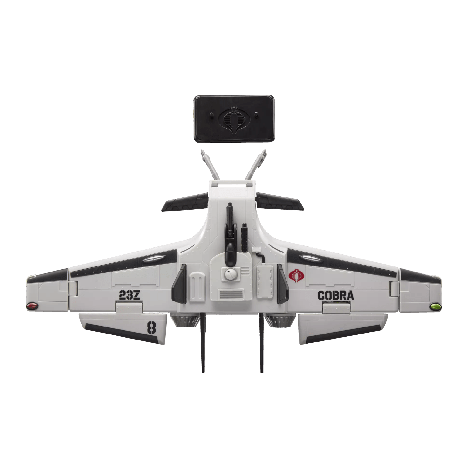 - COBRA TAKES FLIGHT: The enemy battle wing features retractable landing gear with manually rolling wheels; pivoting canards, ailerons, and wing tips; swiveling turret with articulated barrel; 2 jet thruster blast effects; and 2 missile accessories
