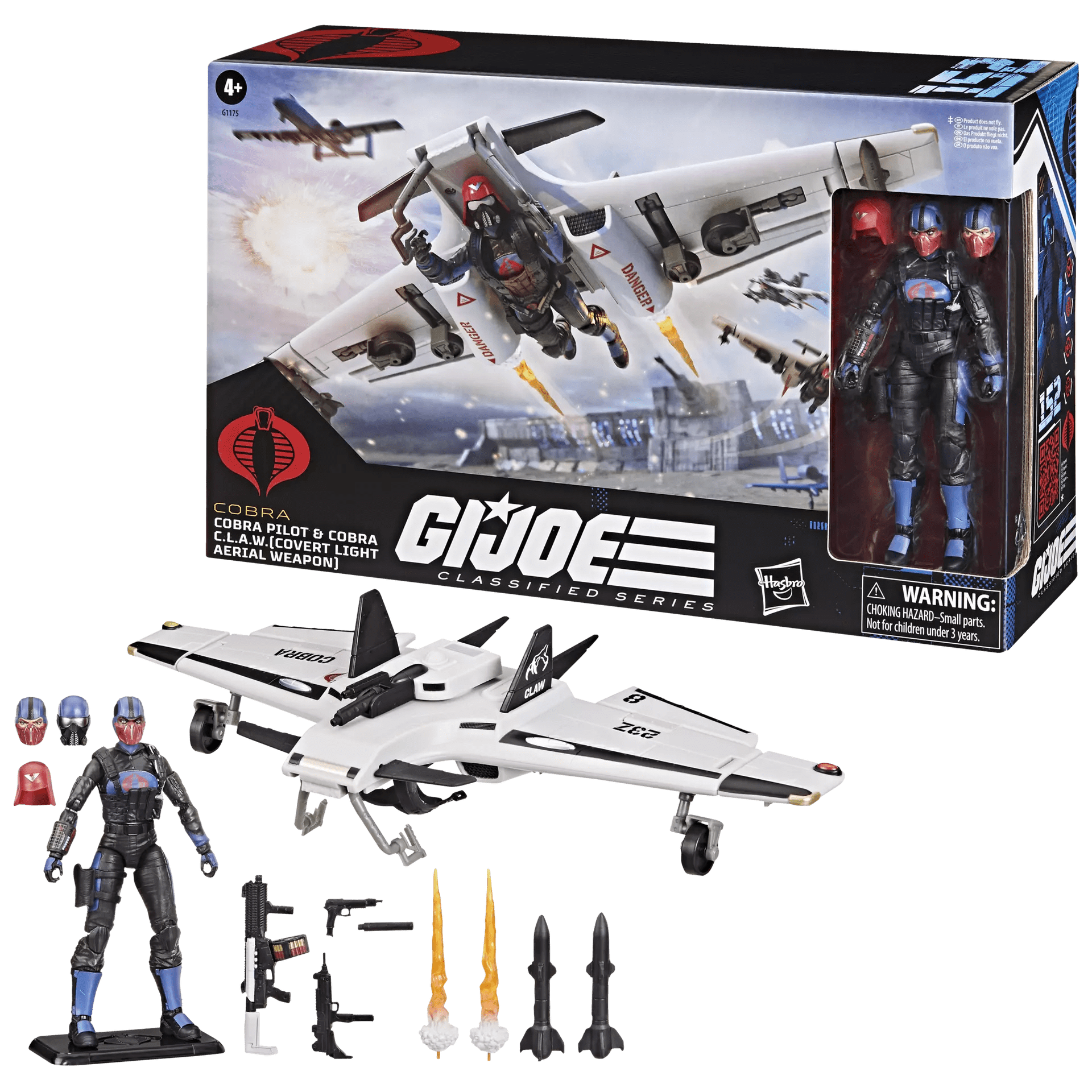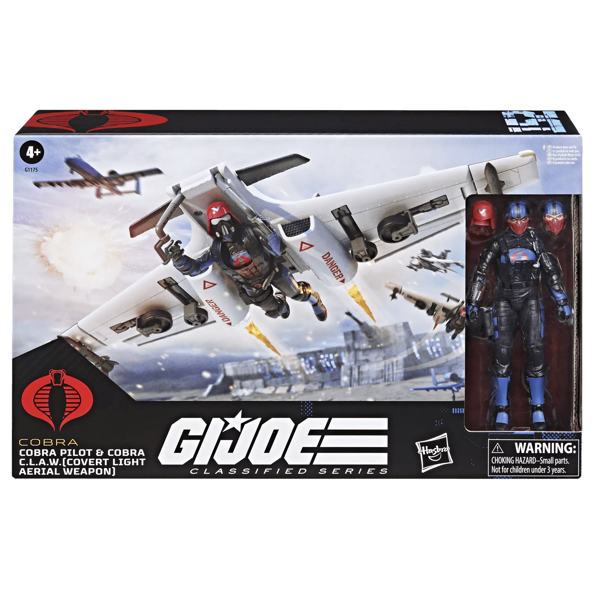 - HIGHLY POSEABLE WITH PREMIUM DETAILING: G.I. Joe Classified Series Cobra Pilot & Cobra C.L.A.W. (Covert Light Aerial Weapon) action figure set features exceptional detailing and articulation to create dazzling dioramas (some poses may require additional support)