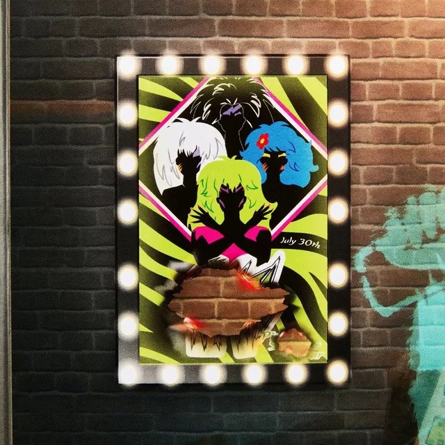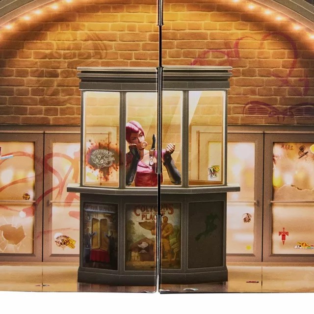 From the moment you slide open the collectible box you’ll feel transported to an unforgettable concert experience. Ease the slipcover off to reveal a treasure trove of Easter Eggs surrounding a recreation of the renowned Springfield Theater’s exterior. The weathered brick façade is adorned with posters and trinkets of past and future performers that have graced their vaunted halls. Don’t try using your VIP Pass to sneak into the theater’s backstage, or Monkeywrench may have a boot he’d like to introduce to your face. Behind the ticket booth glass, Zarana ponders if it’s reinforced as she goes through the motions of granting you admission to the performance of a lifetime.