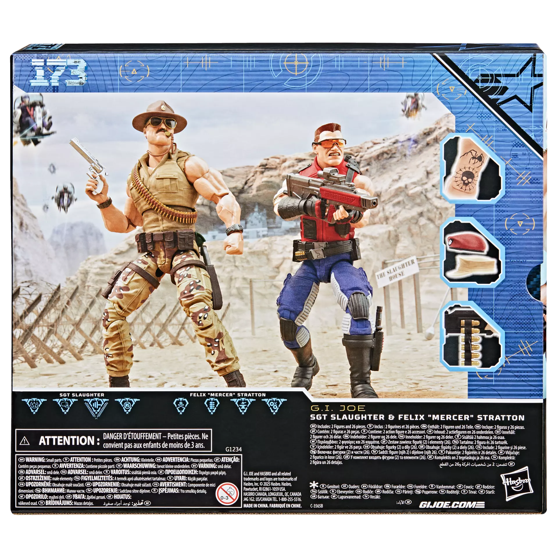 - CLASSIC SGT SLAUGHTER & FELIX “MERCER” STRATTON-INSPIRED DESIGN: Features a classic design updated to bring the G.I. Joe Drill Sergeant and Renegade from G.I. Joe: The Movie into the modern era and 26 accessory pieces inspired by the characters’ rich history