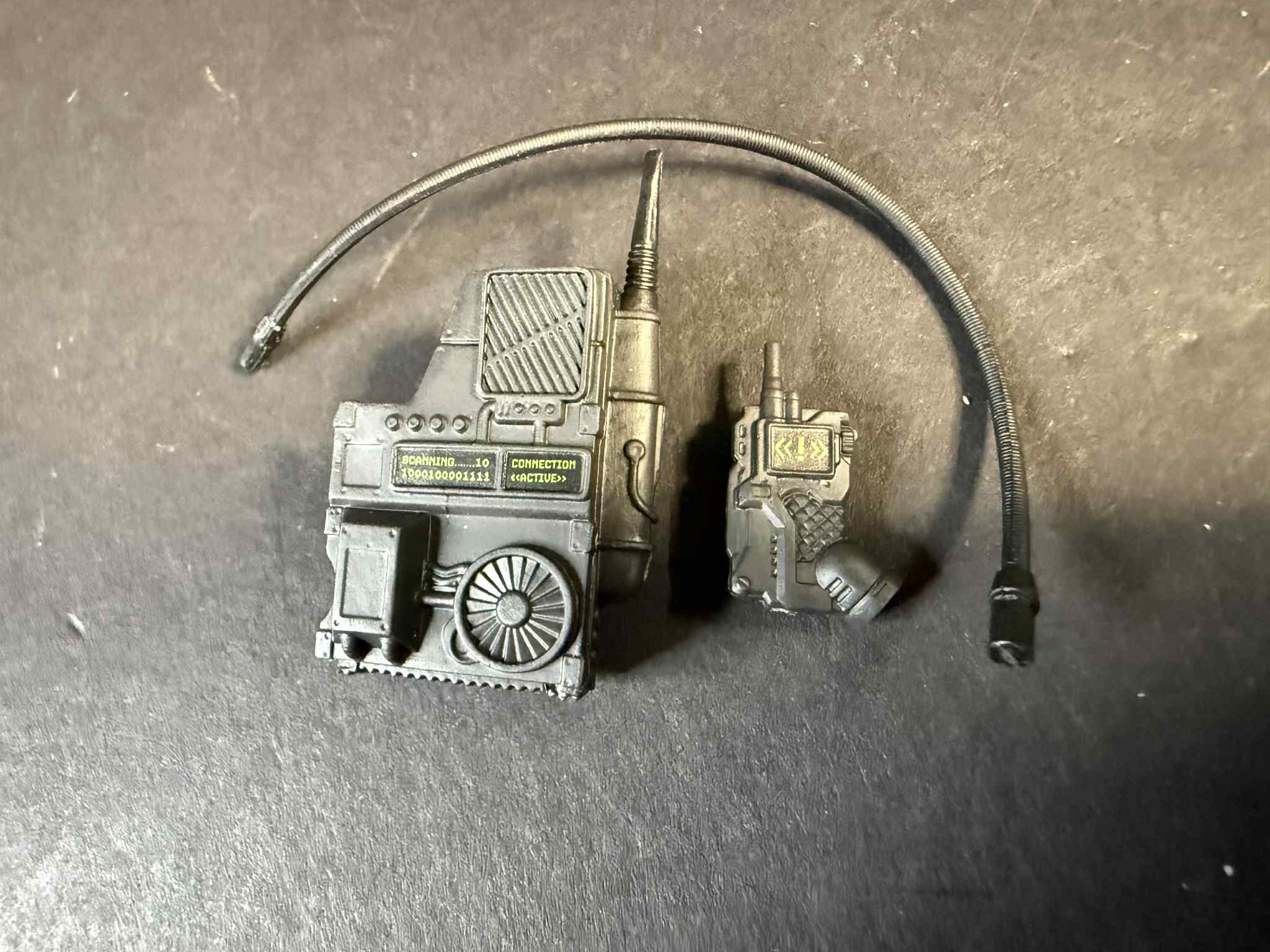 This Blaine “Mainframe” Parker figure contains 9 character-inspired accessory pieces including removable helmet, alternate head with ball cap and headset, hacking device, scanning device which plugs into his backpack via connecting cord, laptop which unfolds, knife, and weapon accessory.