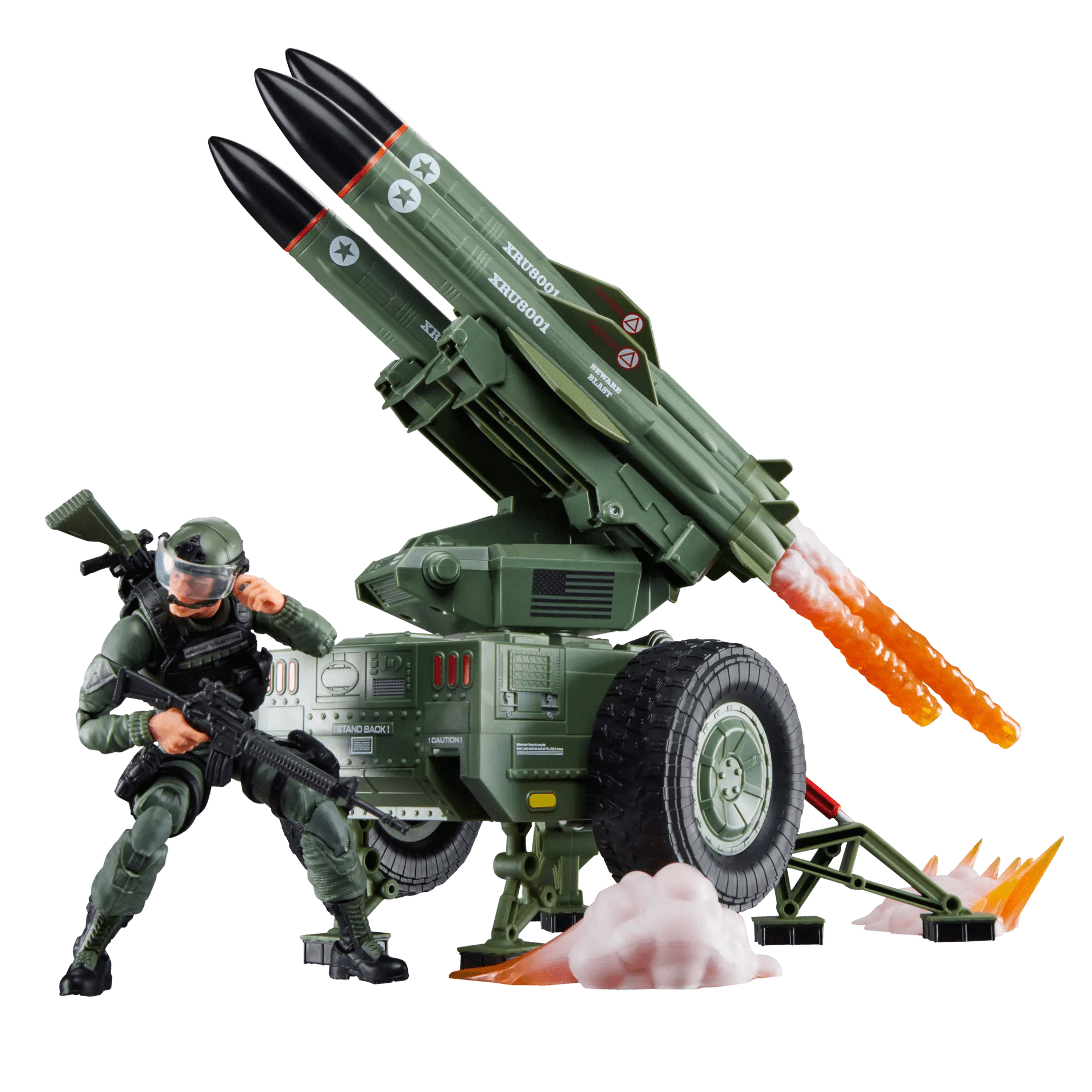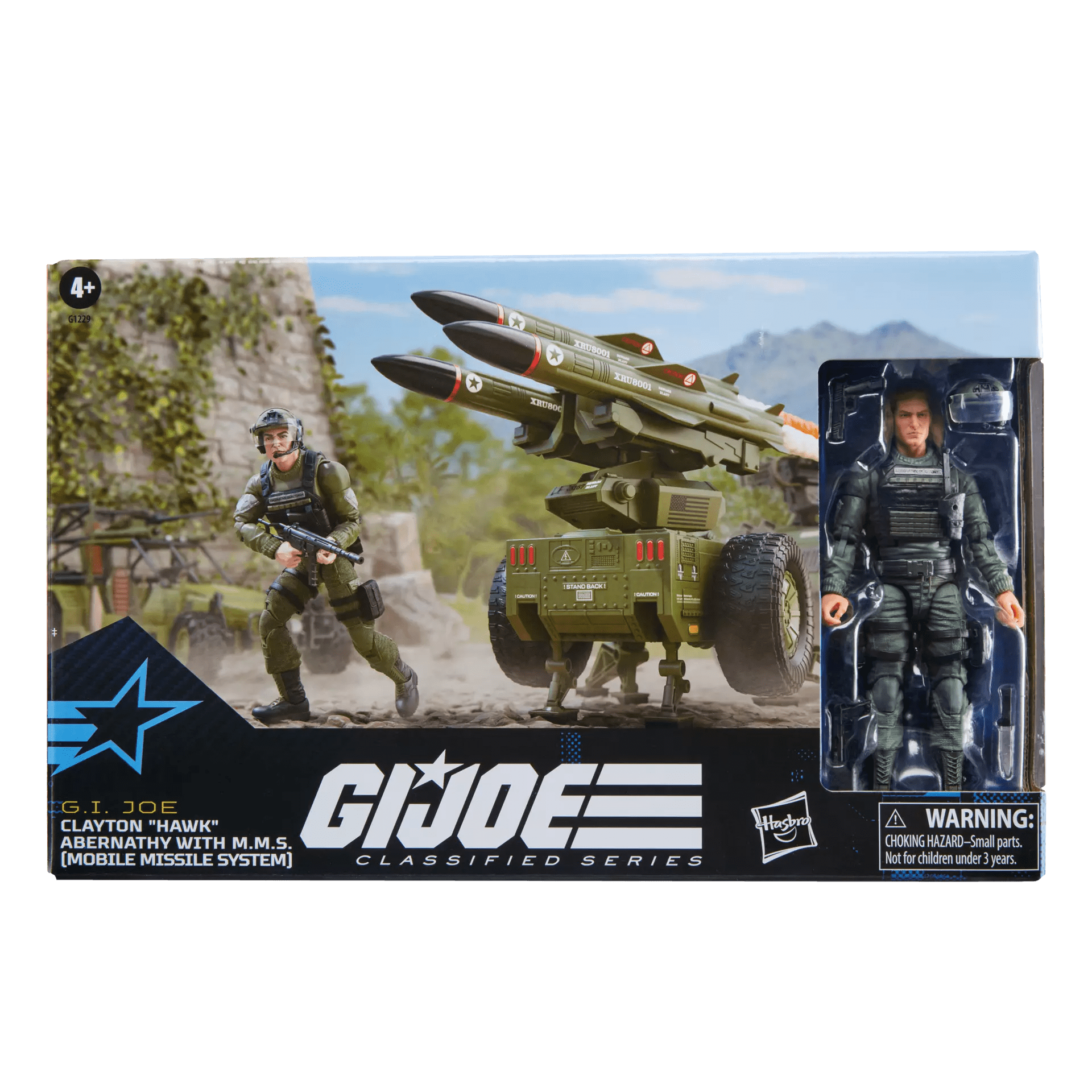 New to the G.I. Joe Classified Series line, Clayton “Hawk” Abernathy with M.M.S. (Mobile Missile System) comes ready for adventure, with multiple points of articulation for high poseability. This Clayton “Hawk” Abernathy figure contains 10 character-inspired accessory pieces including knife, helmet with visor, detachable holster, and weapons accessories. The M.M.S. includes 15 pieces including 3 missile accessories, missile base that elevates and swivels, detachable control panel cover, folding stabilizer leg, folding support legs, free-rolling wheels, adjustable tow hitch and 6 blast effects