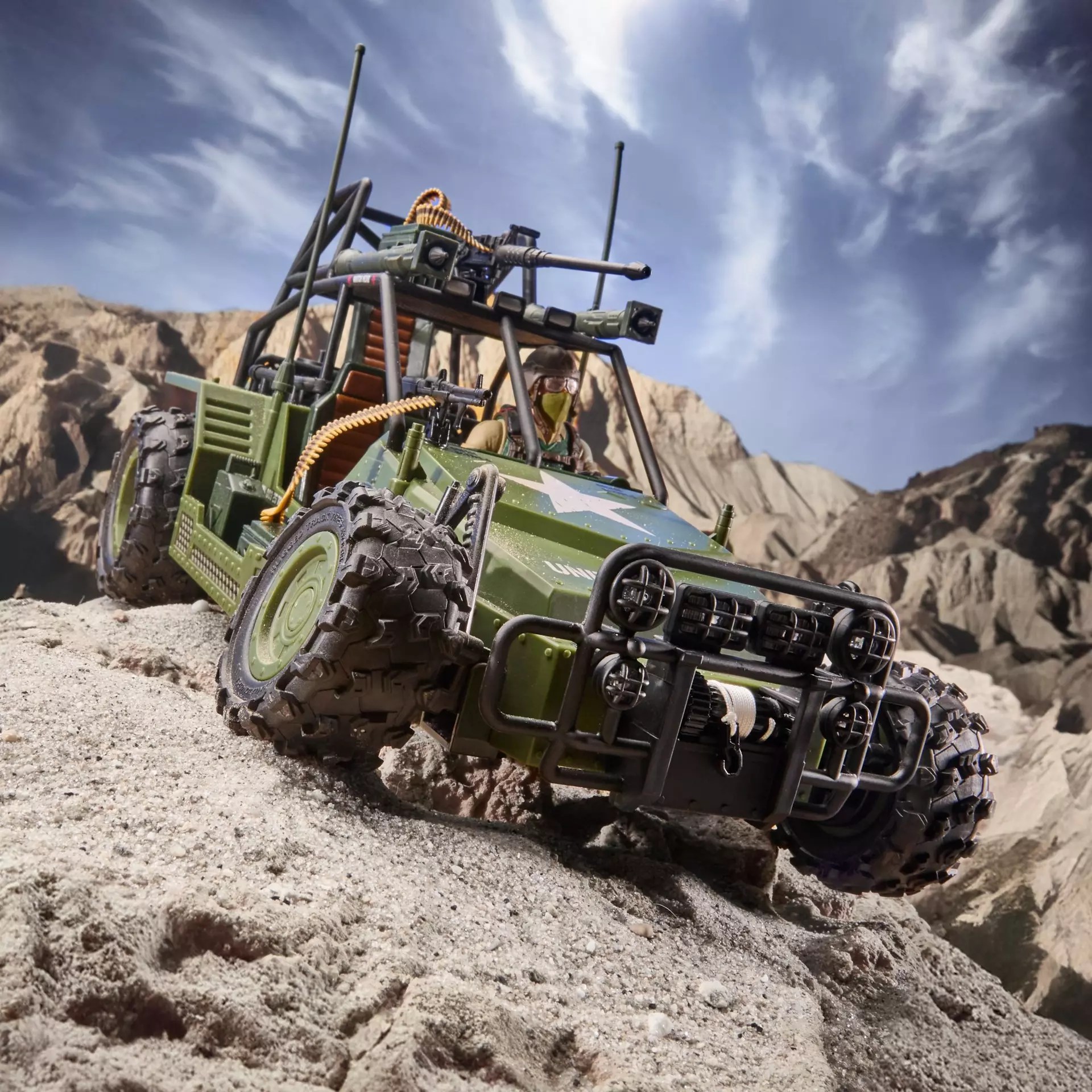 New to the G.I. Joe Classified Series line, Crankcase & A.W.E. (All-Weather And Environment) Striker come ready for adventure, with multiple points of articulation for high poseability. This Crankcase figure contains 9 accessory pieces including 2 helmets, visor, knife, binoculars, goggles, bandana mask, scarf, and weapon accessories. Awe Striker includes functioning tires and suspension, removable roll cages and third bucket seat, tow hitch, tool kit, 2 ammo boxes, antennae, gas can, coffee mug, sticker sheet, and weapon accessories. The interior features articulated steering wheel, gear shifter, and power brake; plus cup holder, Radio System handset, and dashboard detail.