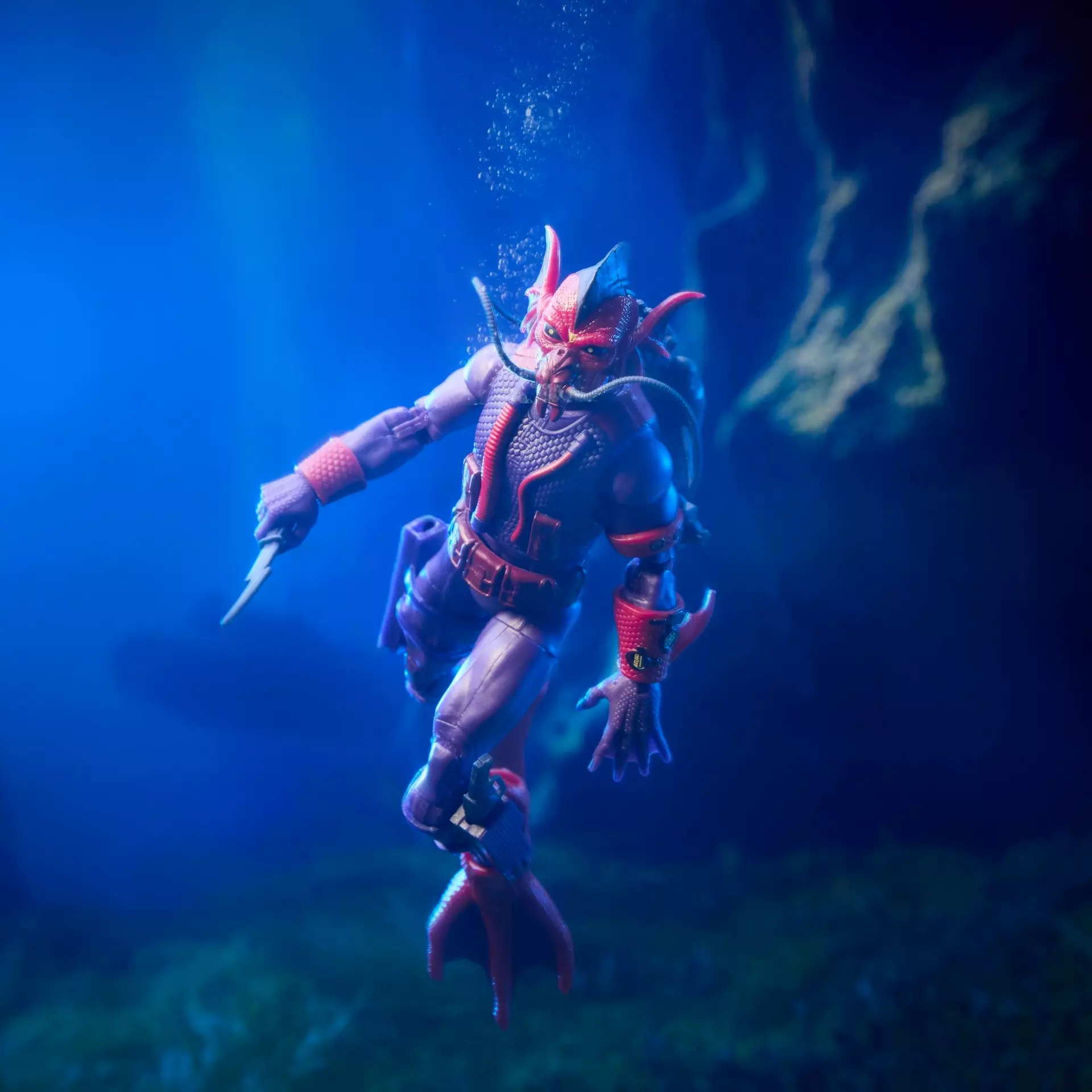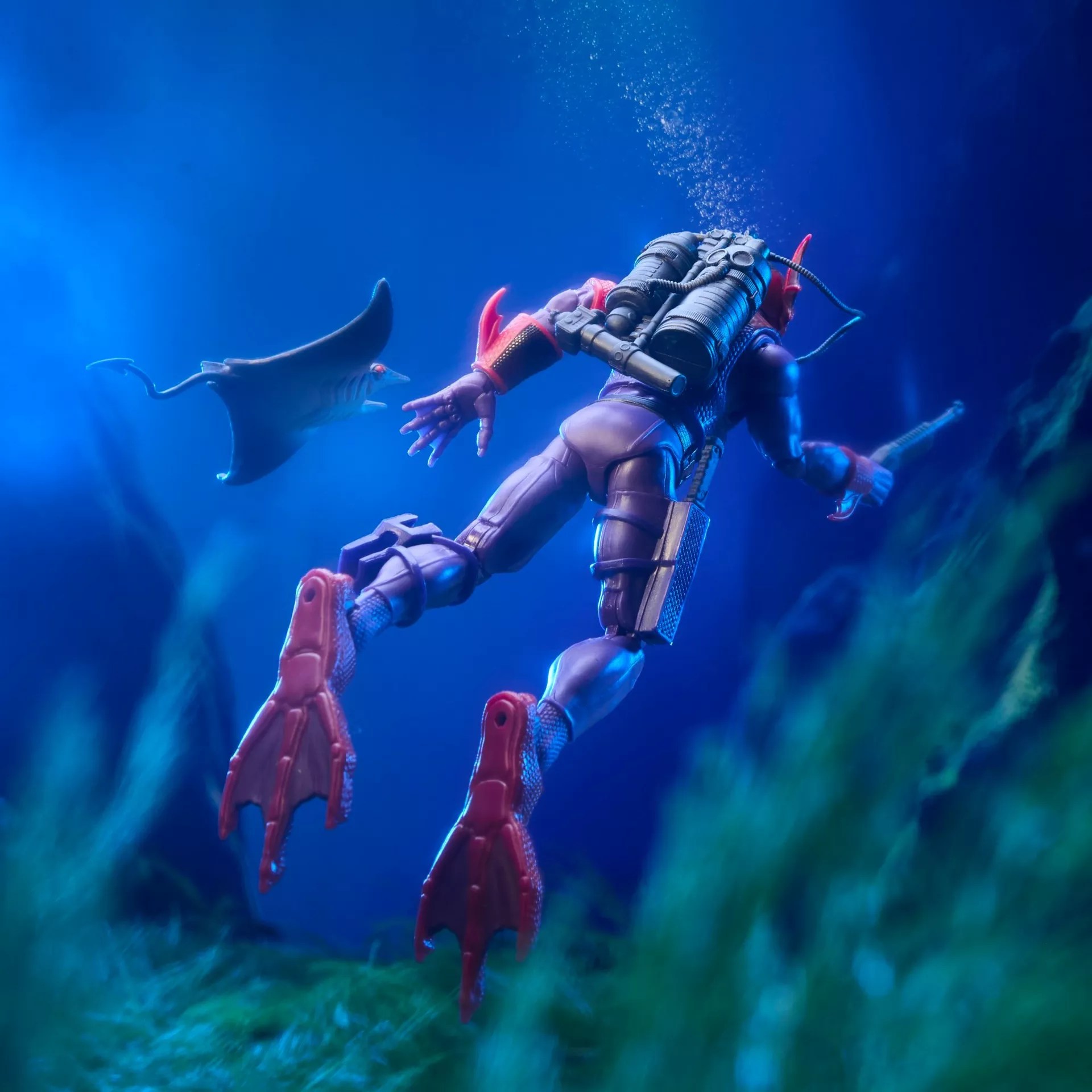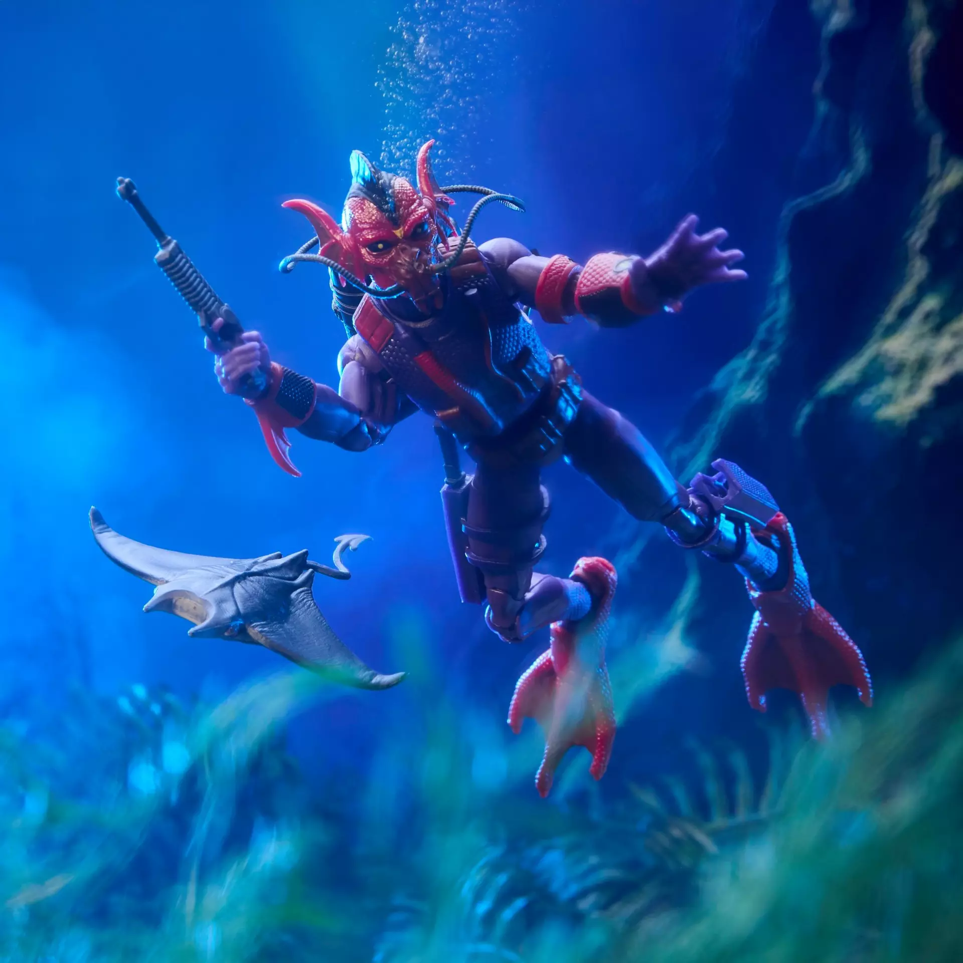 - This Hydro-Viper figure includes 7 character-inspired accessory pieces, featuring a helmet, backpack, diving knife, fins, harpoon launcher, and a pet devil ray for dynamic underwater-themed poses.