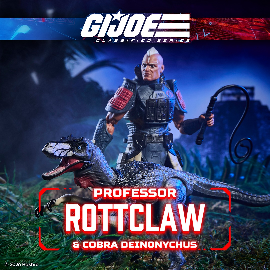 Check out official product photography and details for the G.I. Joe Classified Series #196, Professor Rottclaw & Cobra Deinonychus that dropped for pre-order today, with an asking price of $51.99 –