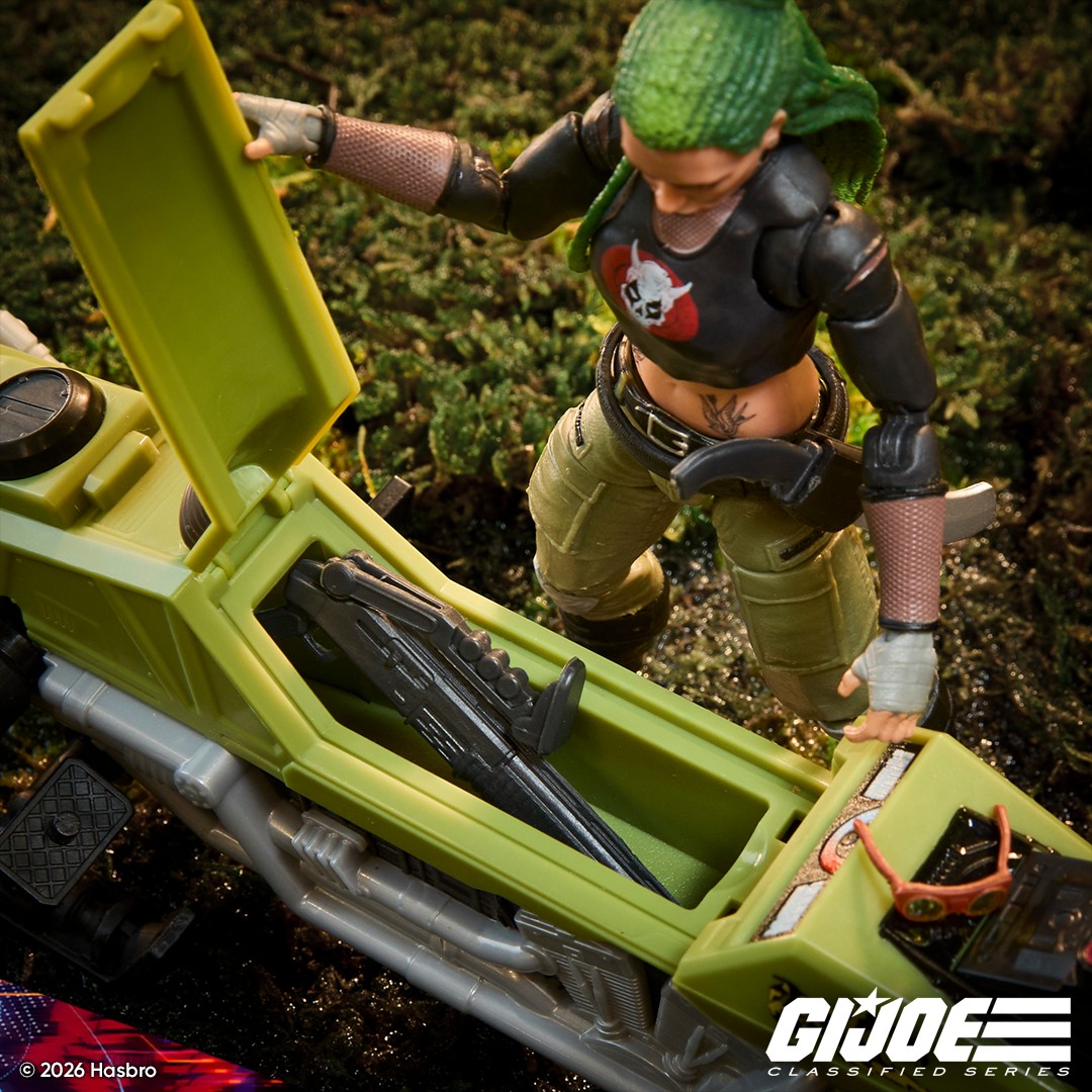 Check out official product photography and details for the G.I. Joe Classified Series #194, Zanya and Dreadnok Chameleon (Swamp Skier) Vehicle –
