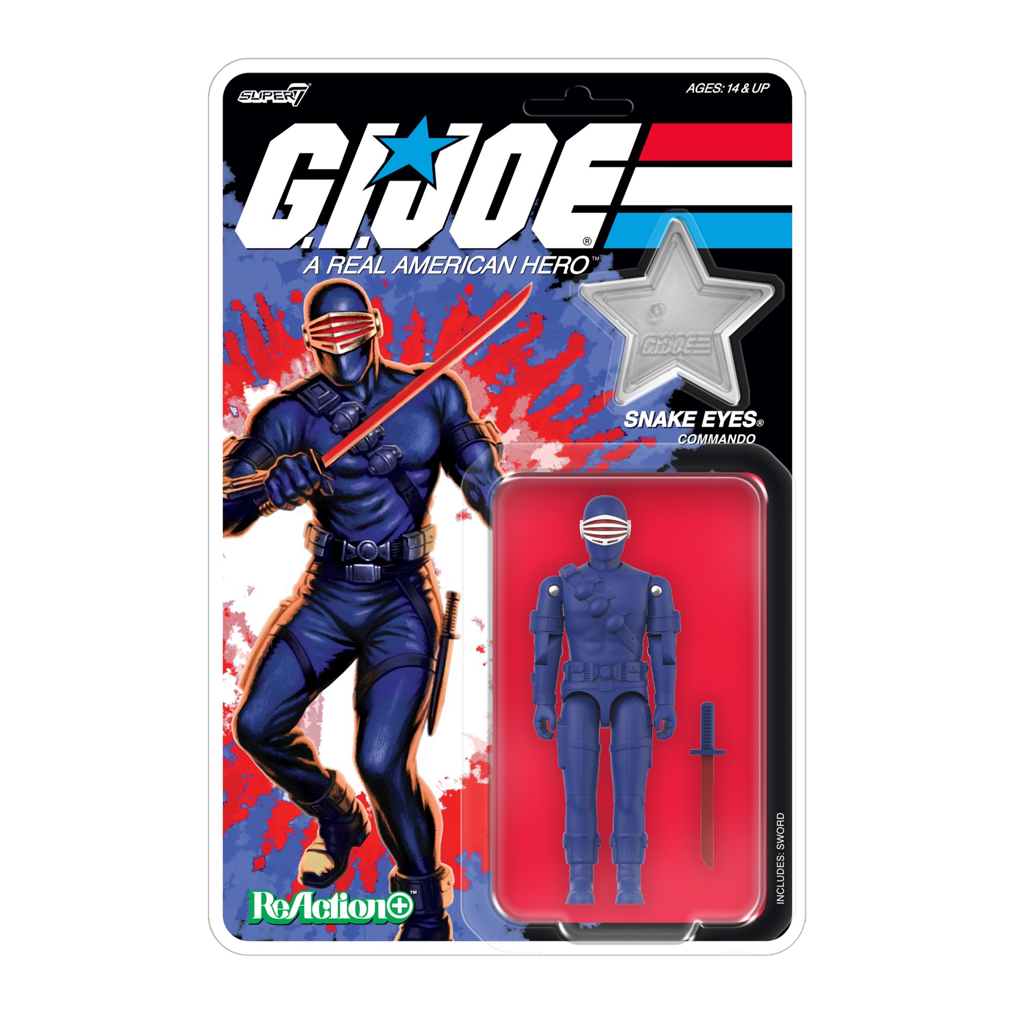 - The Ultimate Gift for G.I. Joe Fans and Retro Toy Collectors; Perfect gift for G.I. Joe fans, 80s toy collectors, Super7 ReAction figure enthusiasts, and anyone who grew up loving A Real American Hero — Snake Eyes is one of the most popular and recognizable G.I. Joe characters of all time; Be on the lookout for other figures in the Super7 G.I. Joe Modern Army Action Soldiers series — Lady Jaye, Duke, and Falcon. Additional products each sold separately. Subject to availability; Includes: figure and sword. Figure scale: 3.75 inches. Ages 14 and up. This is not a toy but a collector’s item and not suitable for children. The product may contain breakable, sharp-edged, and small parts; Super7 OpCo LLC, 777 Florida St. #202, San Francisco, CA 94110. http://www.super7.com.