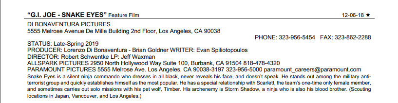 The latest issue of Production Weekly gives us new details on the upcoming G.I.Joe – Snake Eyes live action movieContinue Reading